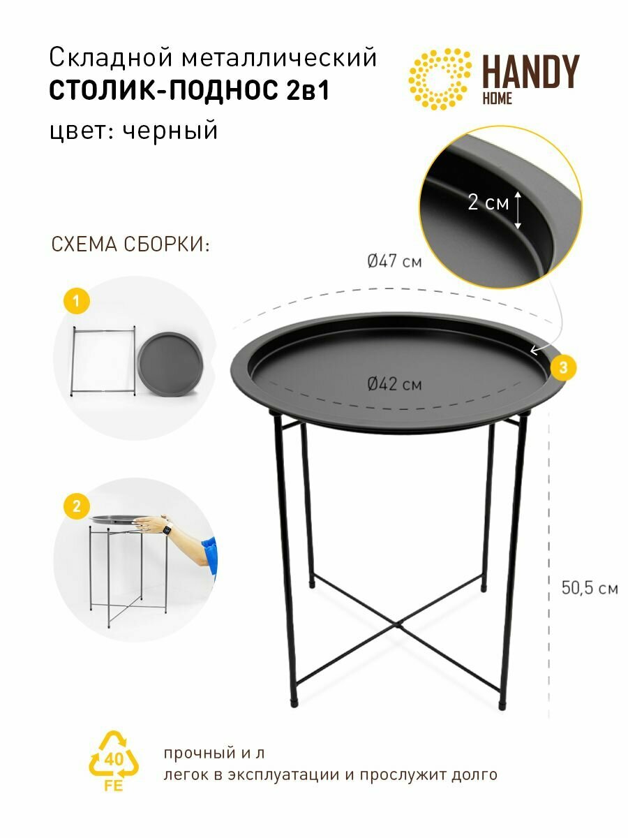 Круглый журнальный стол Handy Home / Съемный поднос на ножках / Цвет черный интересное: