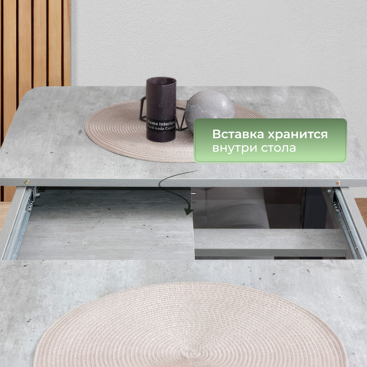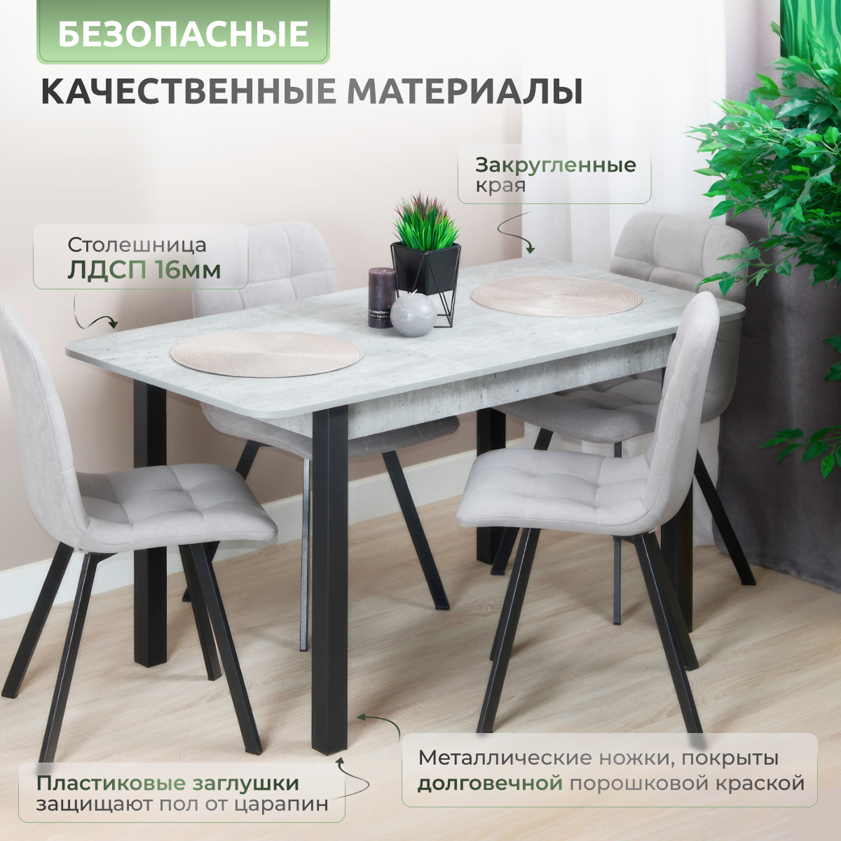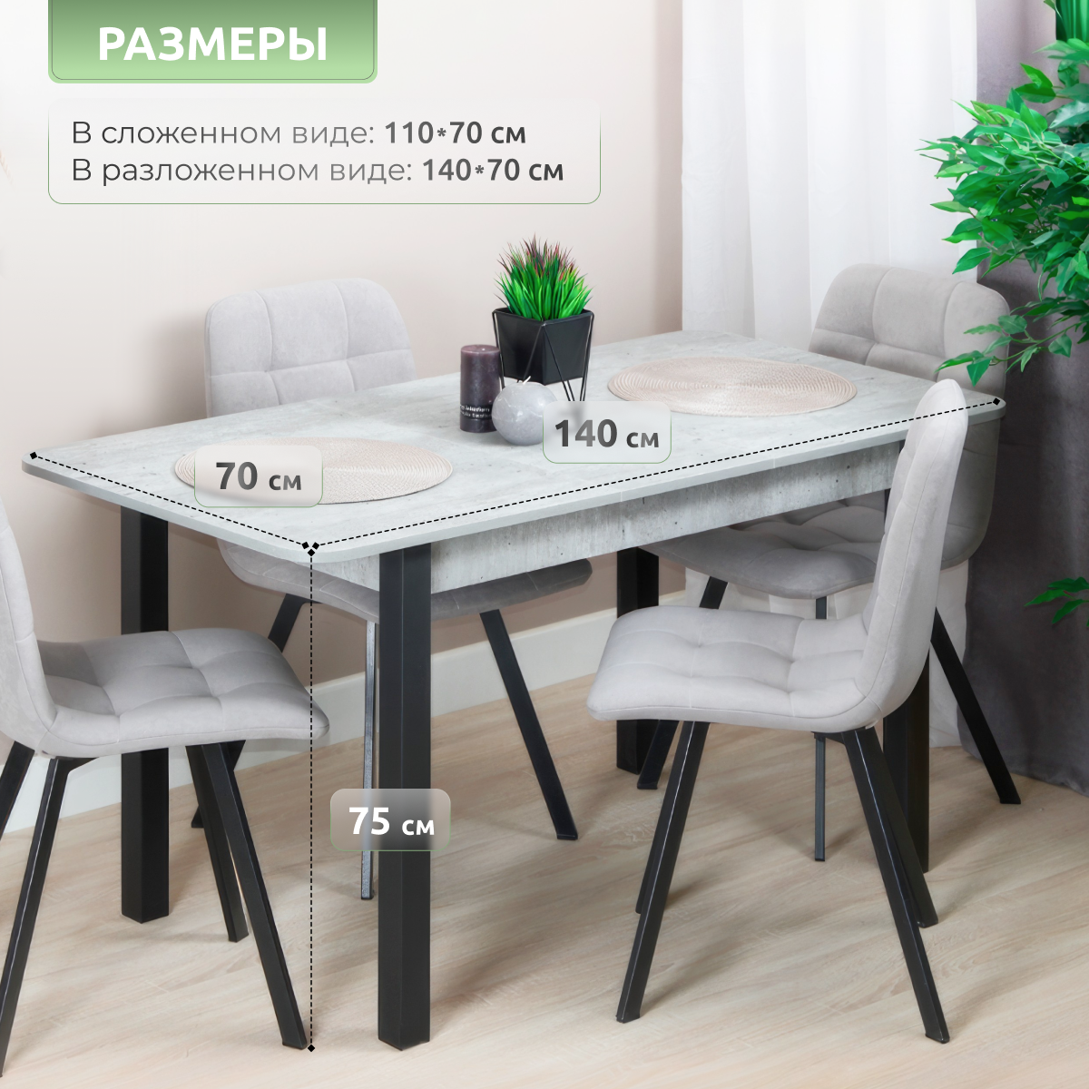 Стол кухонный "Прайм Бетон", раздвижной прямоугольный, бетон 110х70х75 см, ЛДСП интересное: