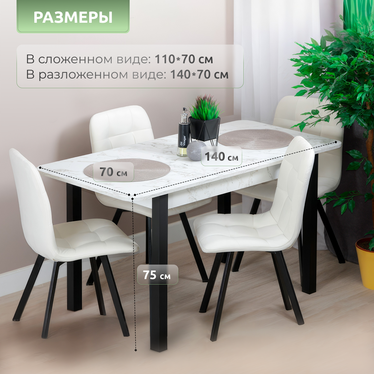 Стол кухонный "Прайм Сабия", раздвижной прямоугольный, 110х70х75 см, мрамор