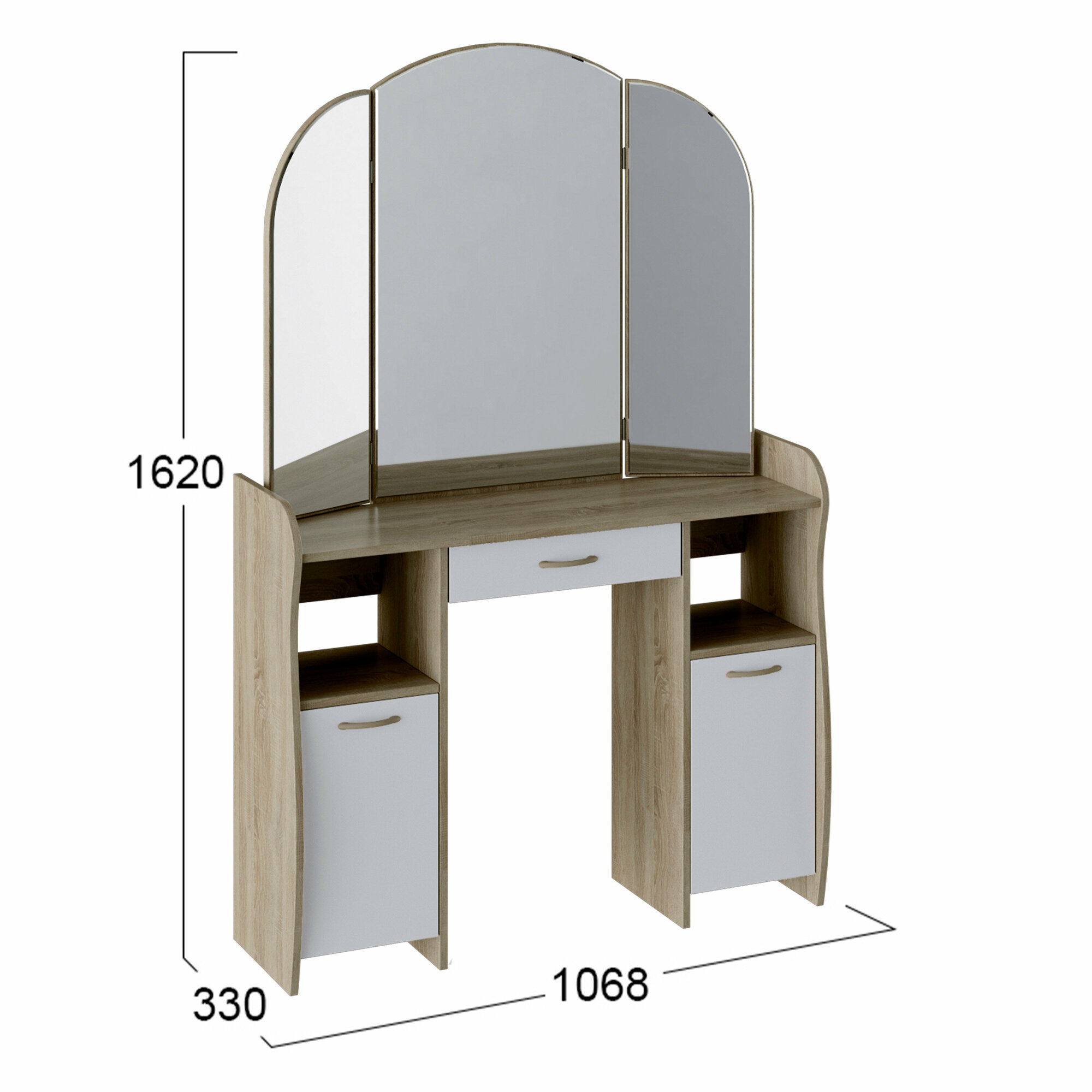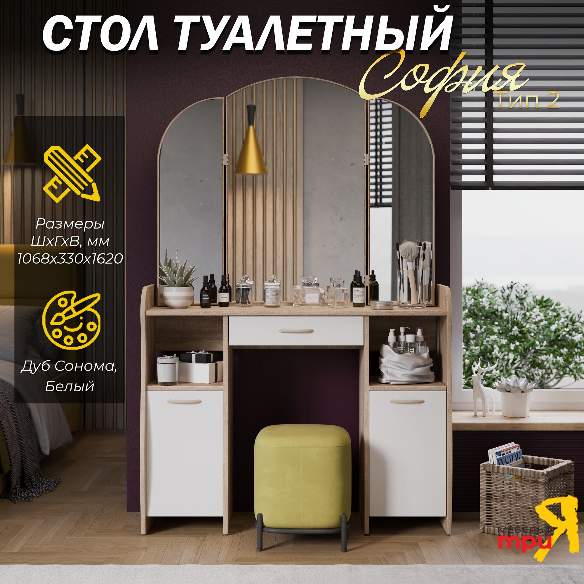 Туалетный столик, трюмо, гримерный столик с ящиком и полками бежевый дуб (ВхДхГ) 162х107х33, София Т2 интересное: