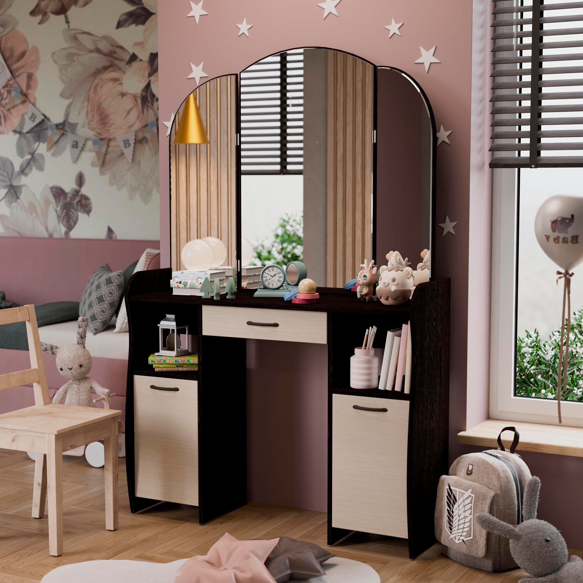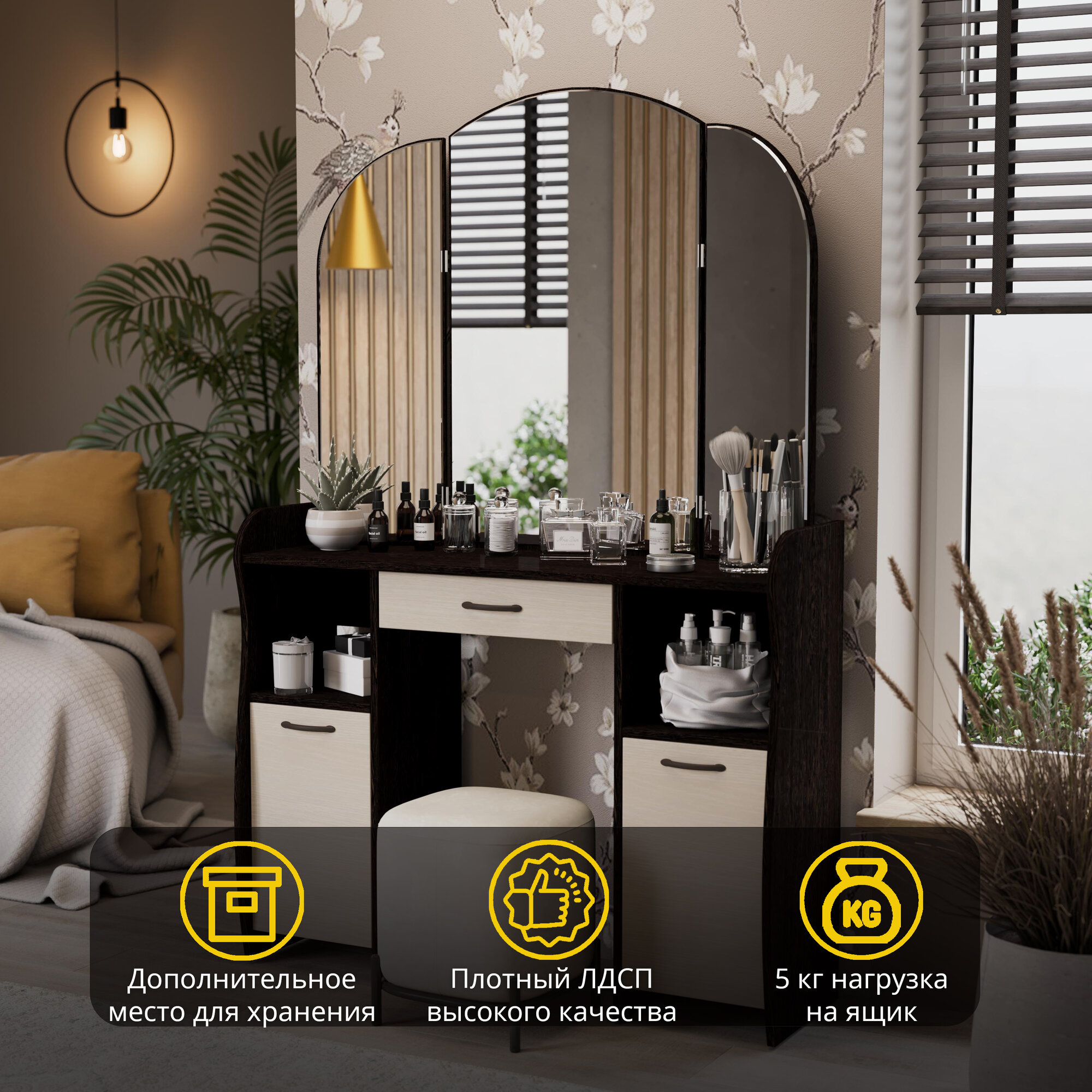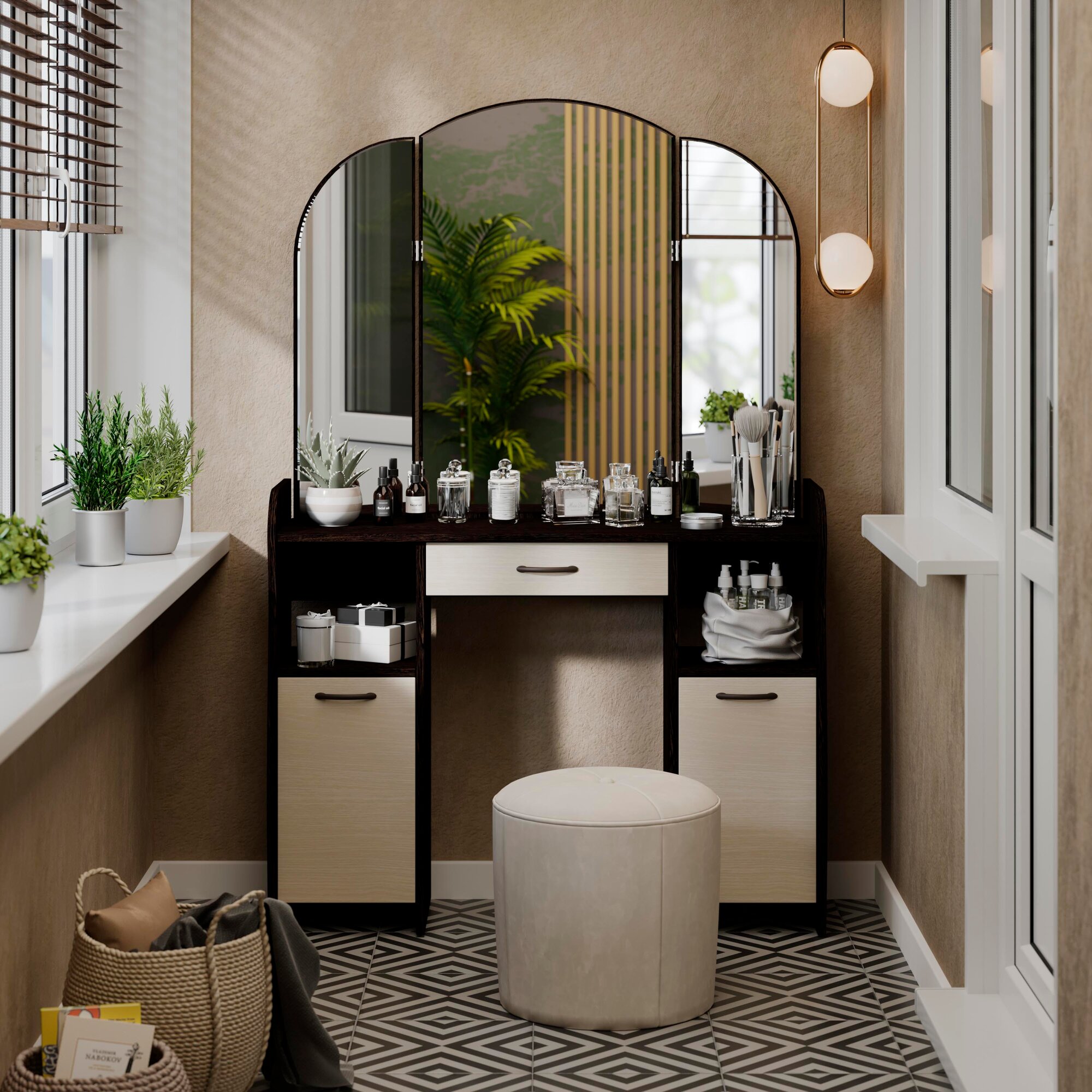 Туалетный столик, трюмо, гримерный столик с ящиком и полками коричневый (ВхДхГ) 162х107х33, София Т2 интересное: