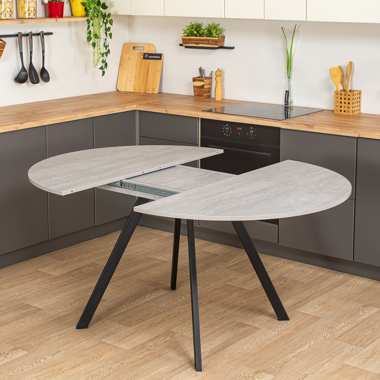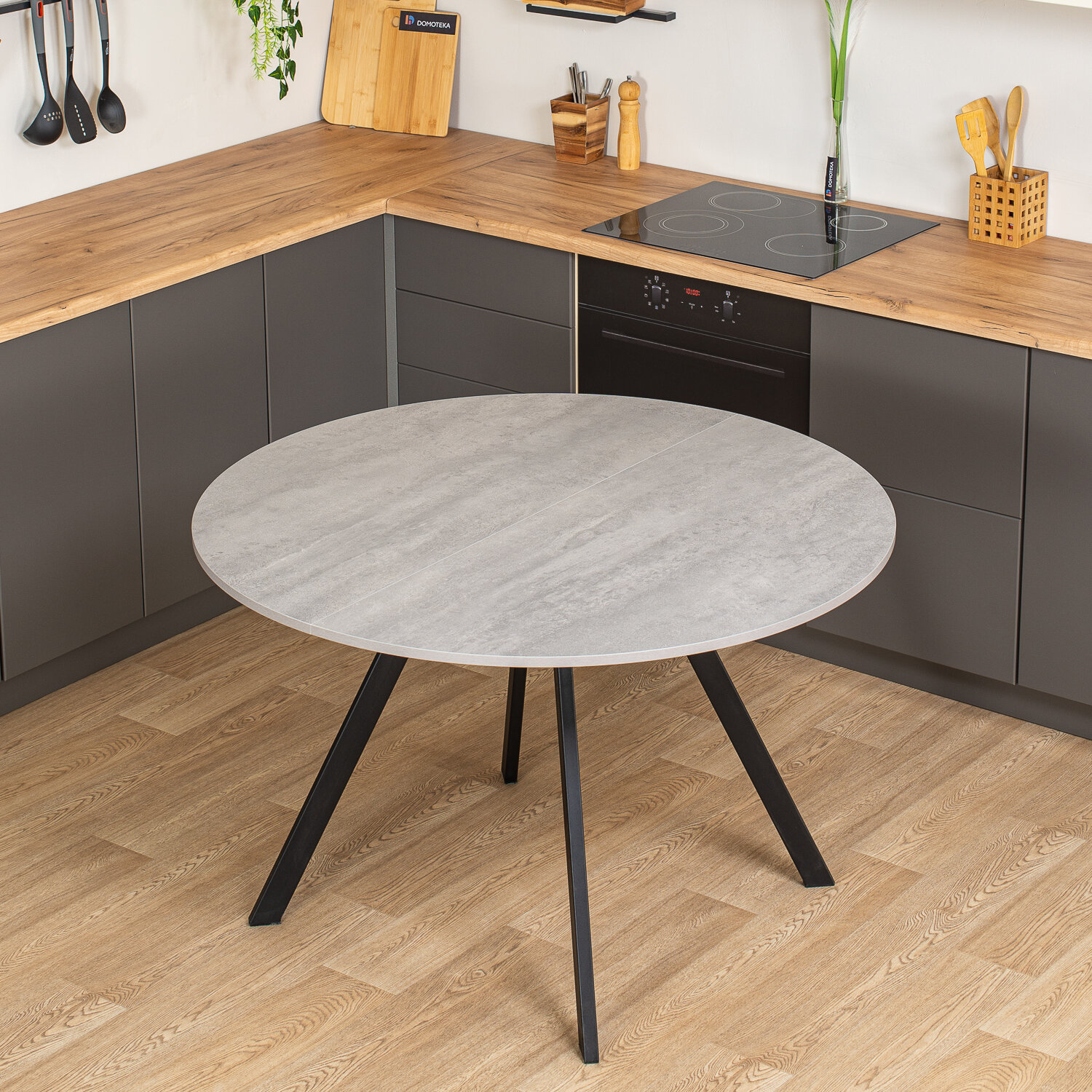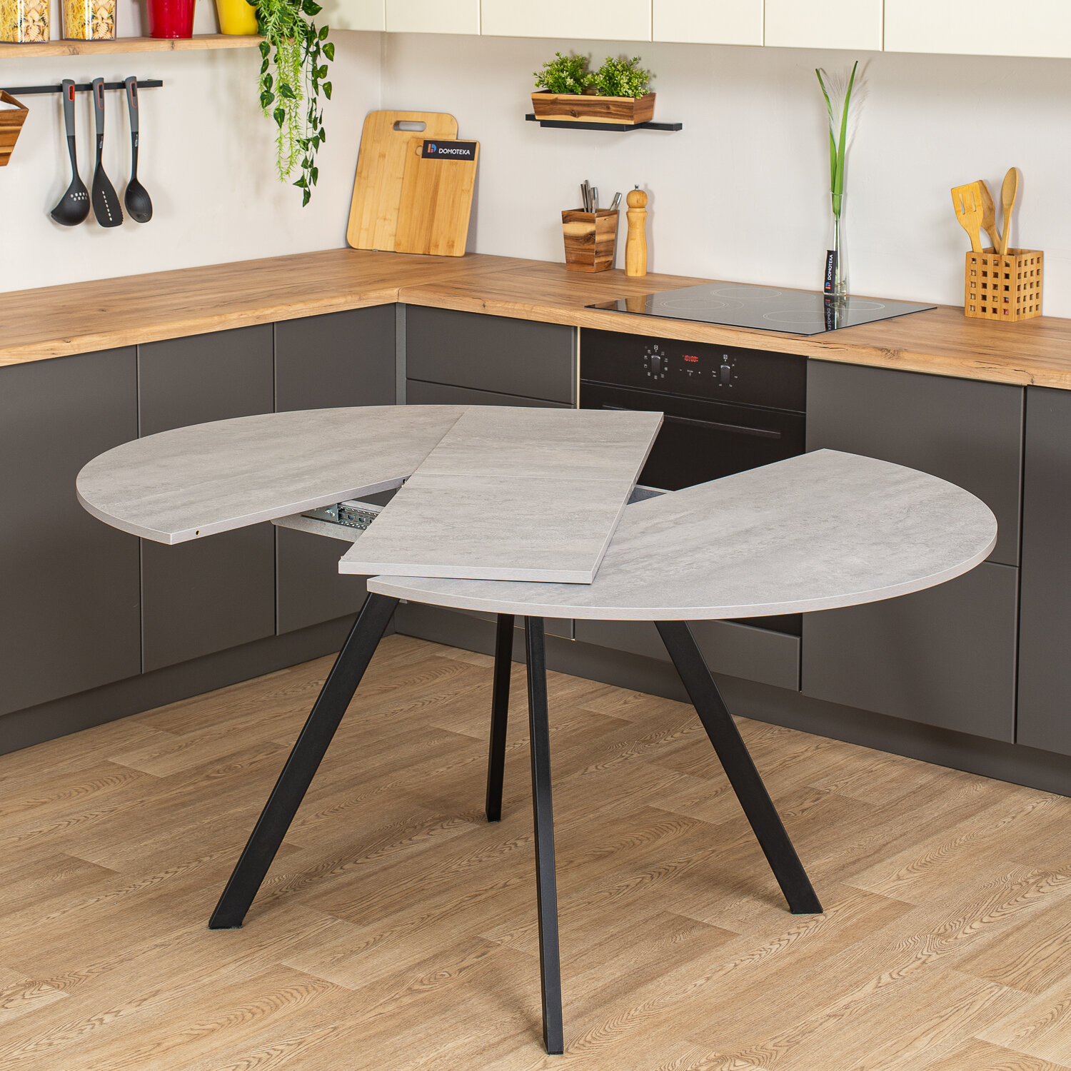 Стол круглый кухонный раздвижной Вита К СБ 95 ЧР, столешница ЛДСП, раскладной, серый, черный