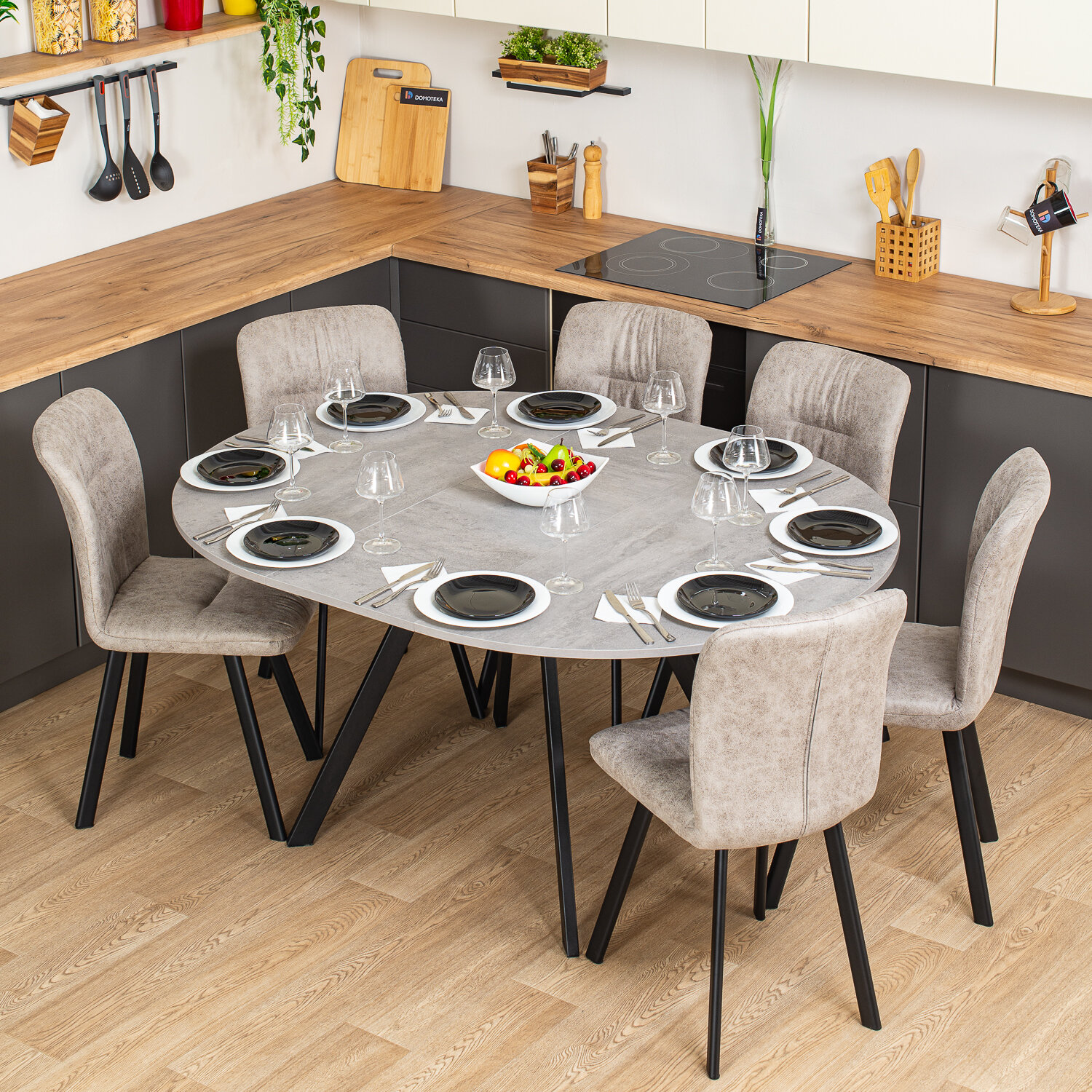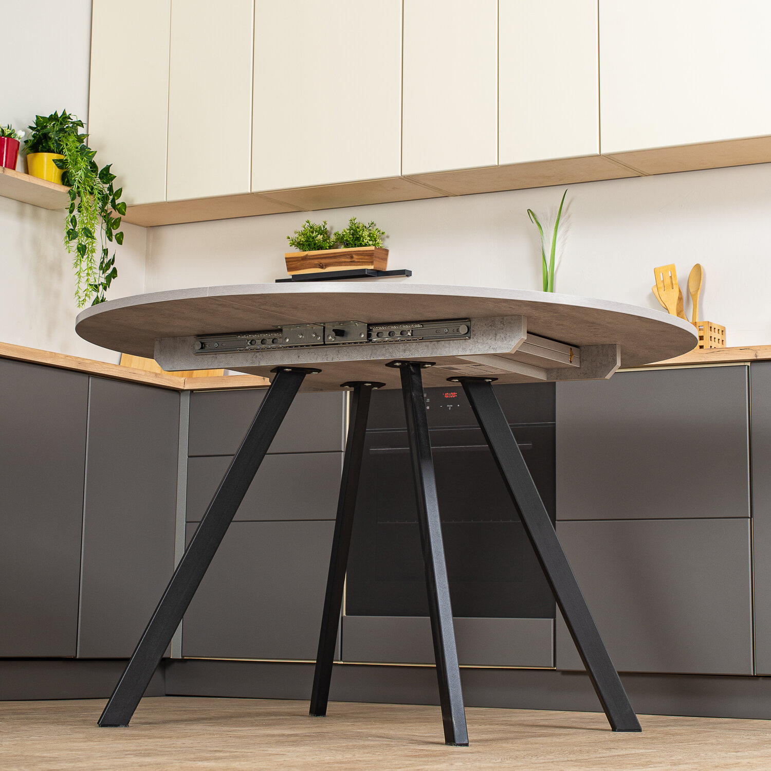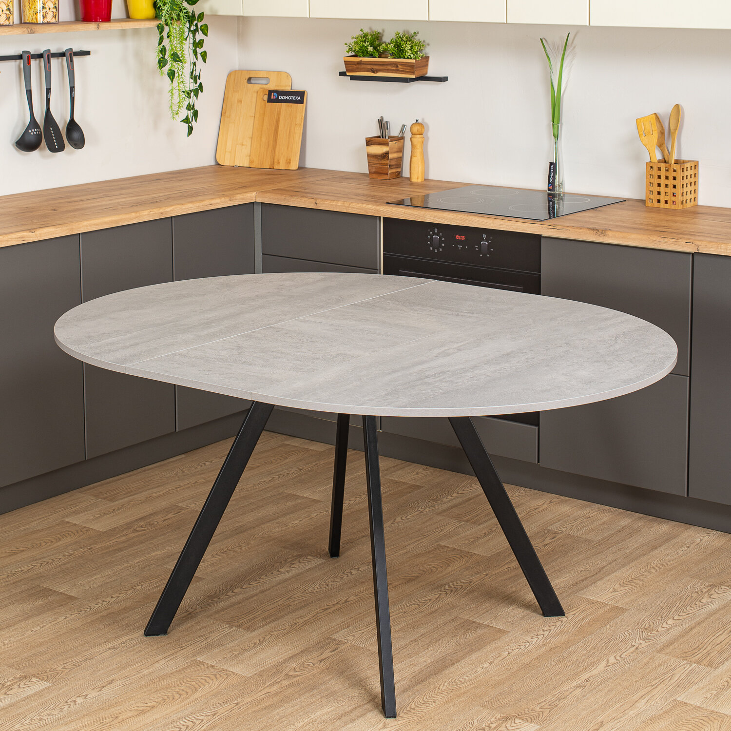 Стол круглый кухонный раздвижной Вита К СБ 95 ЧР, столешница ЛДСП, раскладной, серый, черный
