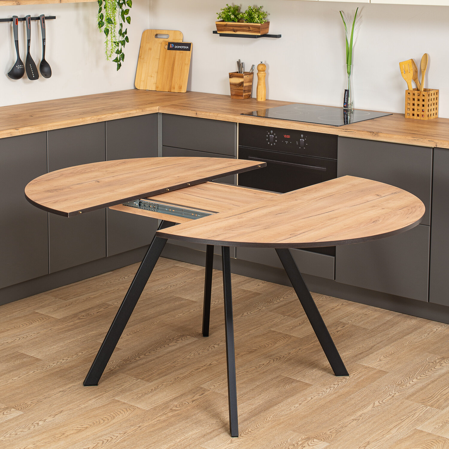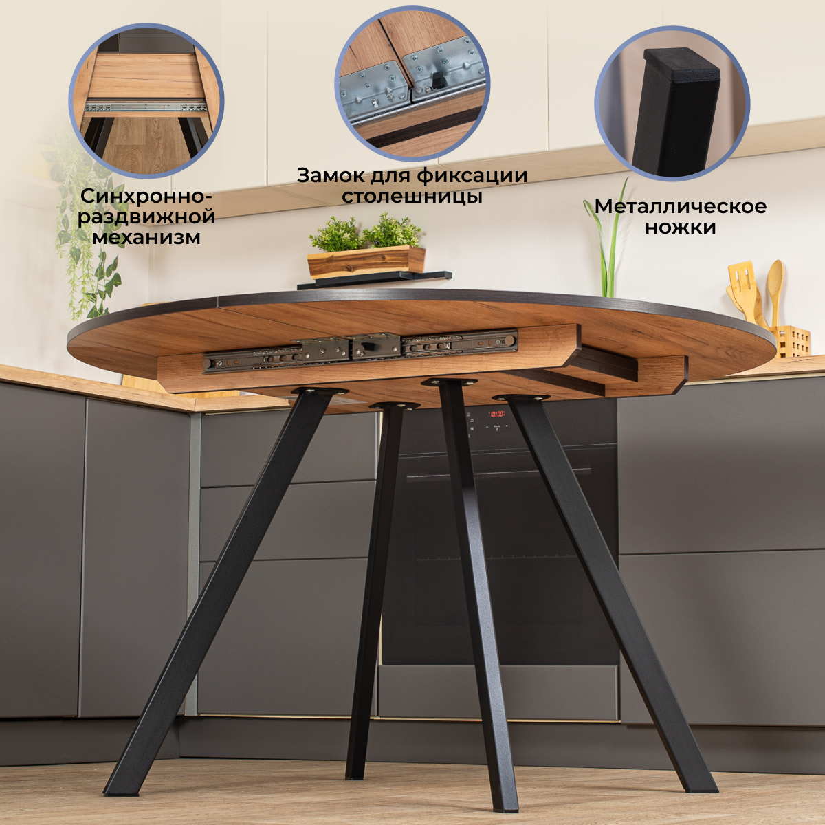 Стол круглый кухонный раздвижной Вита К СБ 95 СР, столешница ЛДСП, раскладной, серый графит