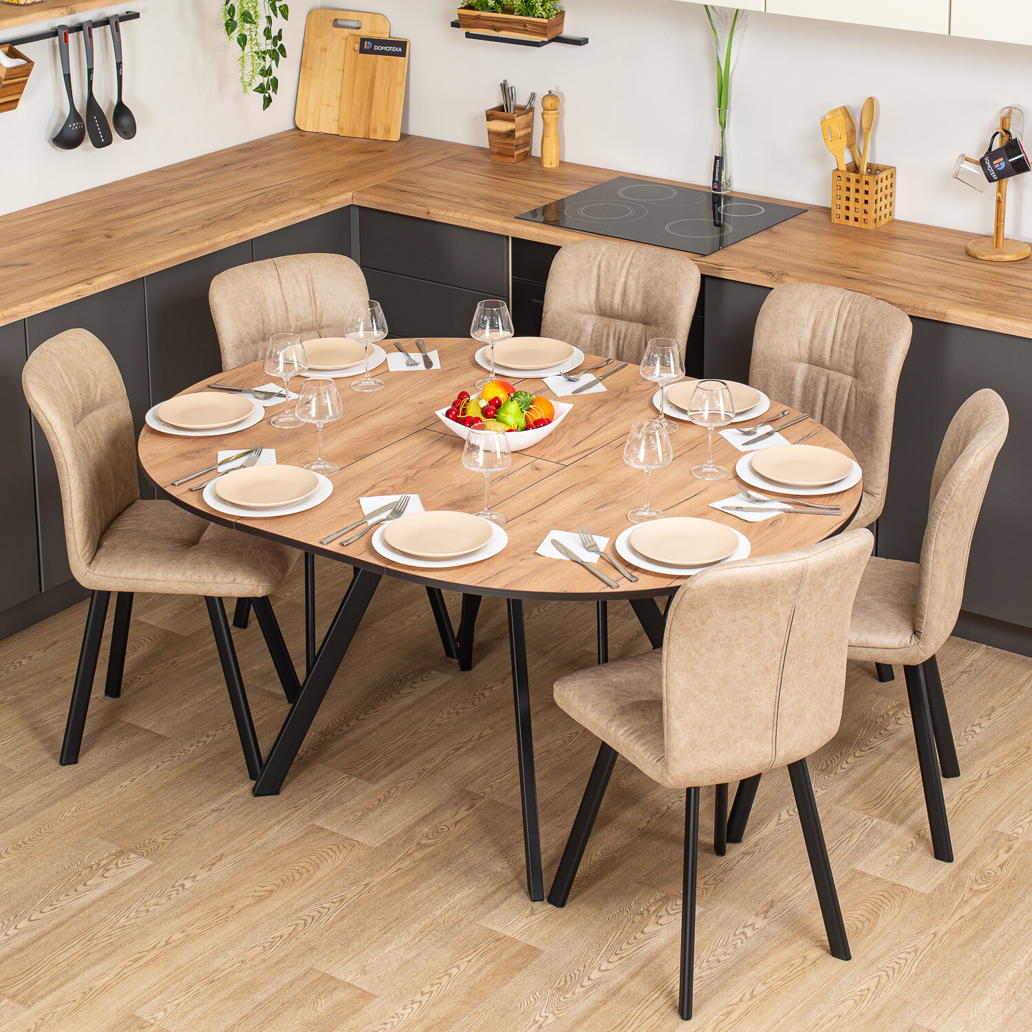 Стол круглый кухонный раздвижной Вита К ДК 95 ЧР, столешница ЛДСП, раскладной, темно бежевый,