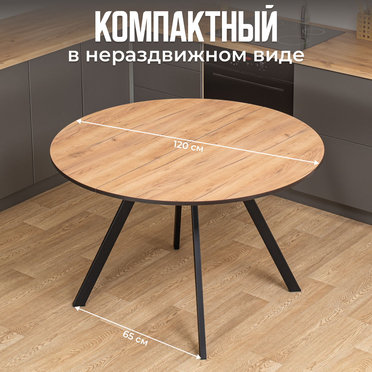 Стол круглый кухонный раздвижной Вита К-1 ДК 95 ЧР, столешница ЛДСП, раскладной, темно бежевый,