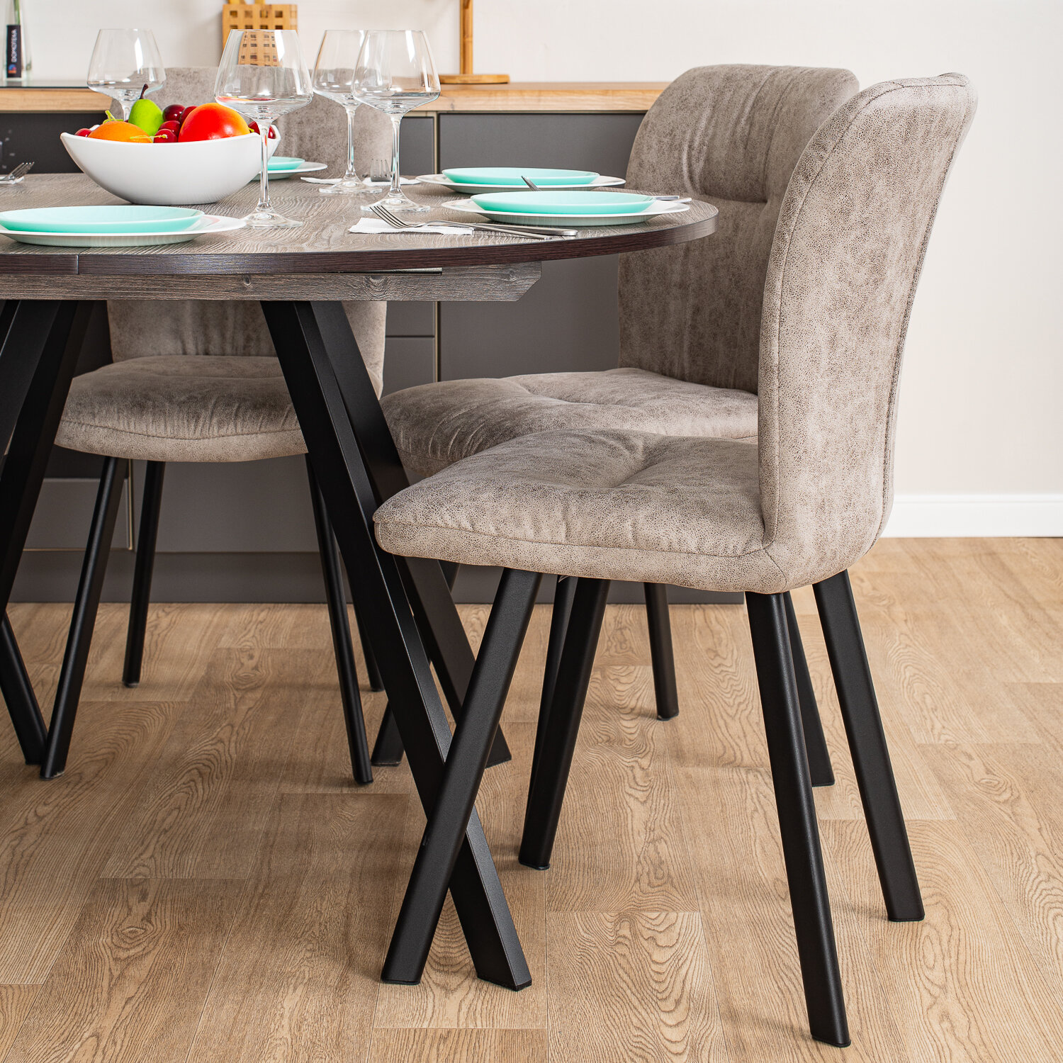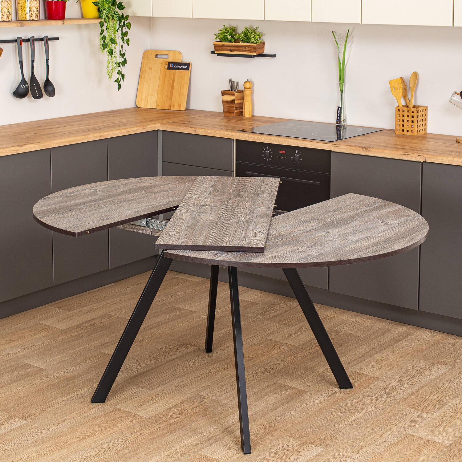 Стол круглый кухонный раздвижной Вита К СБ 95 ЧР, столешница ЛДСП, раскладной, серый, черный