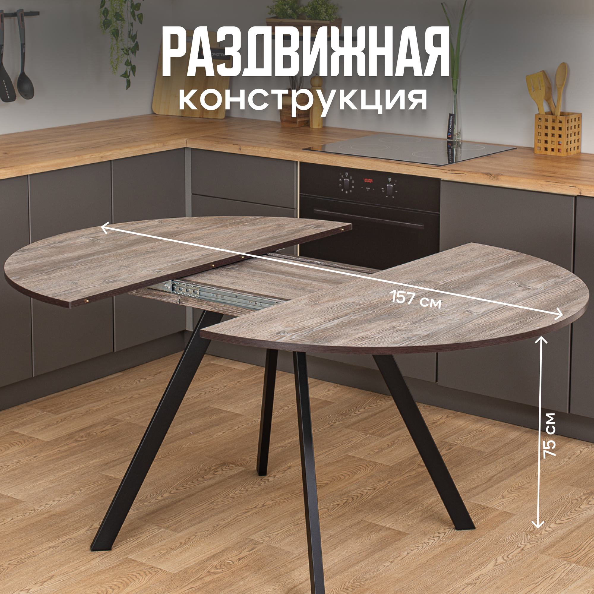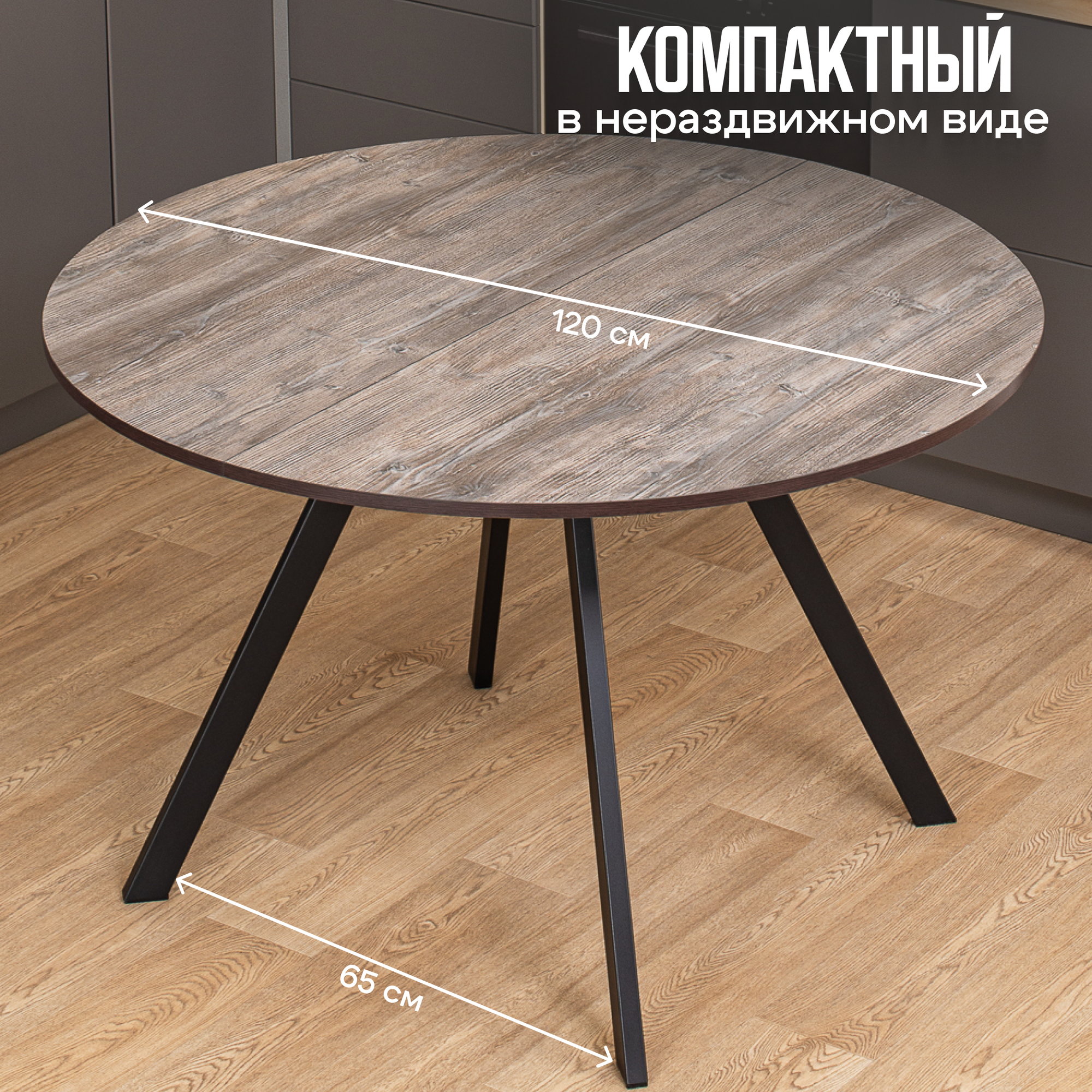 СохранитьСтол круглый кухонный раздвижной Вита К-2 от 95 ЧР, столешница ЛДСП, раскладной, серо-коричневый интересное: