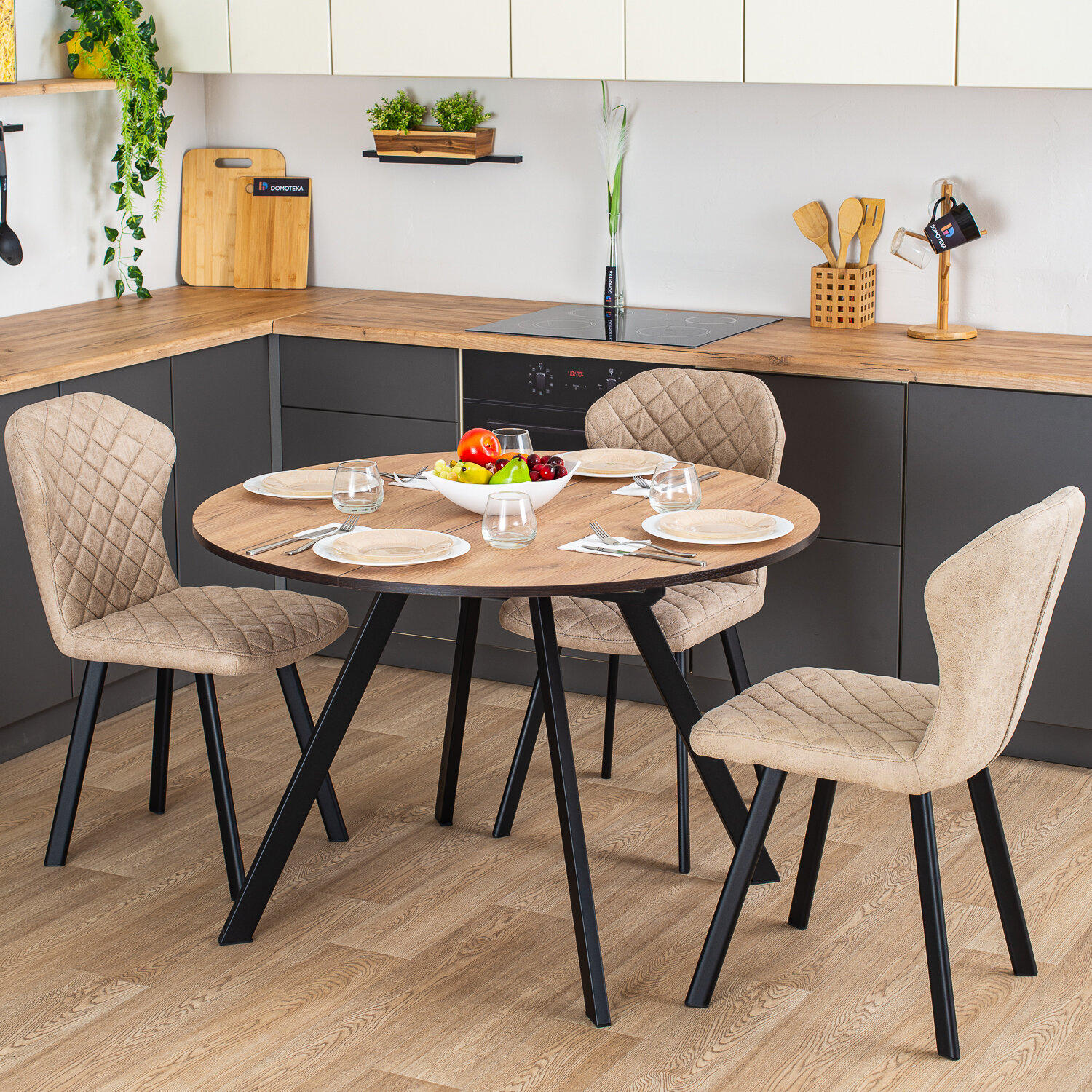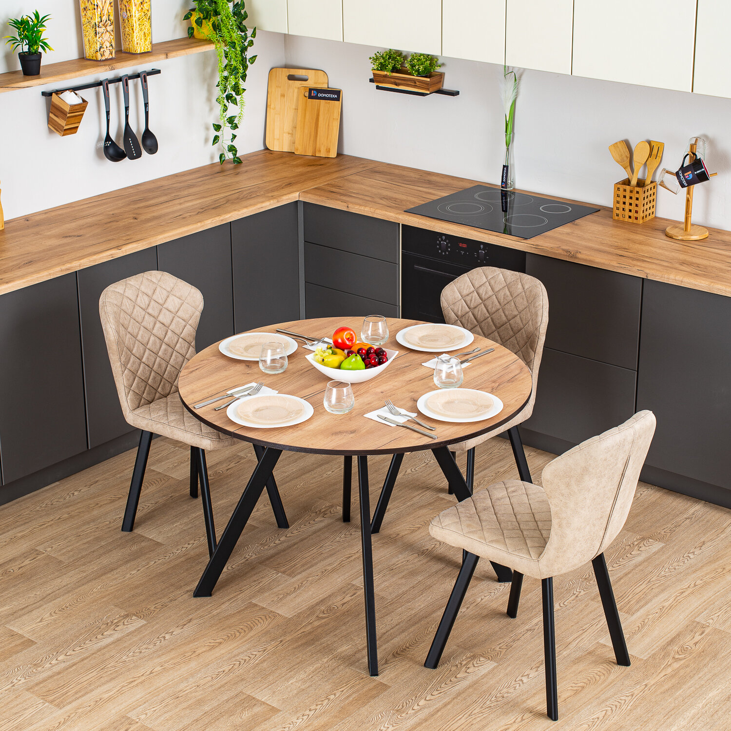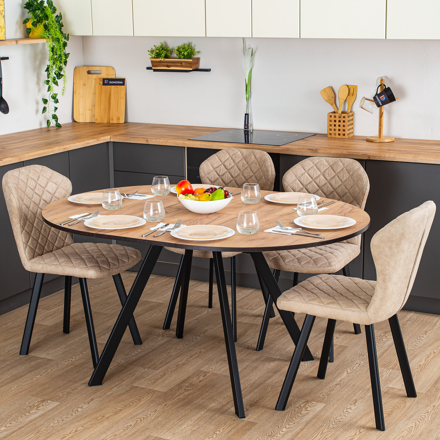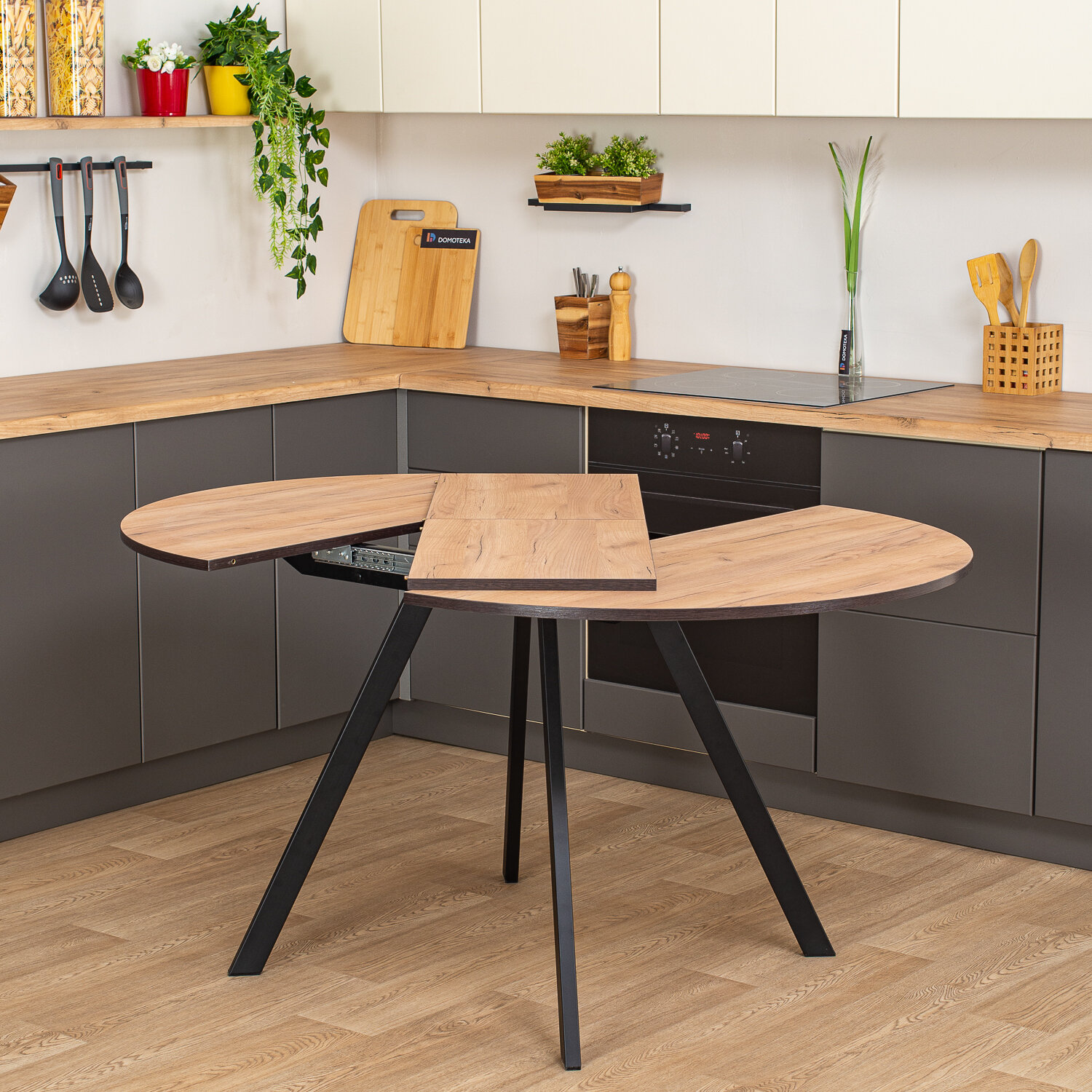 Стол круглый кухонный раздвижной Вита К-2 ДК 95 ЧР, столешница ЛДСП, раскладной, темно-бежевый