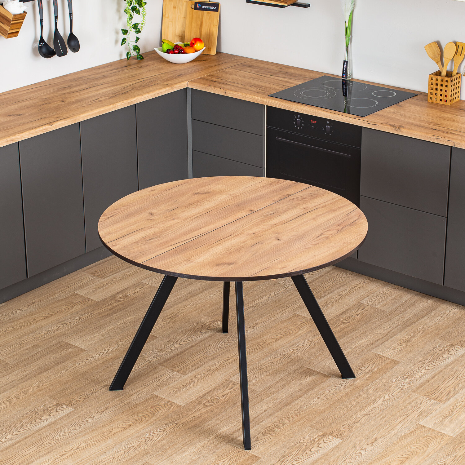 Стол круглый кухонный раздвижной Вита К ДК 95 ЧР, столешница ЛДСП, раскладной, темно бежевый,