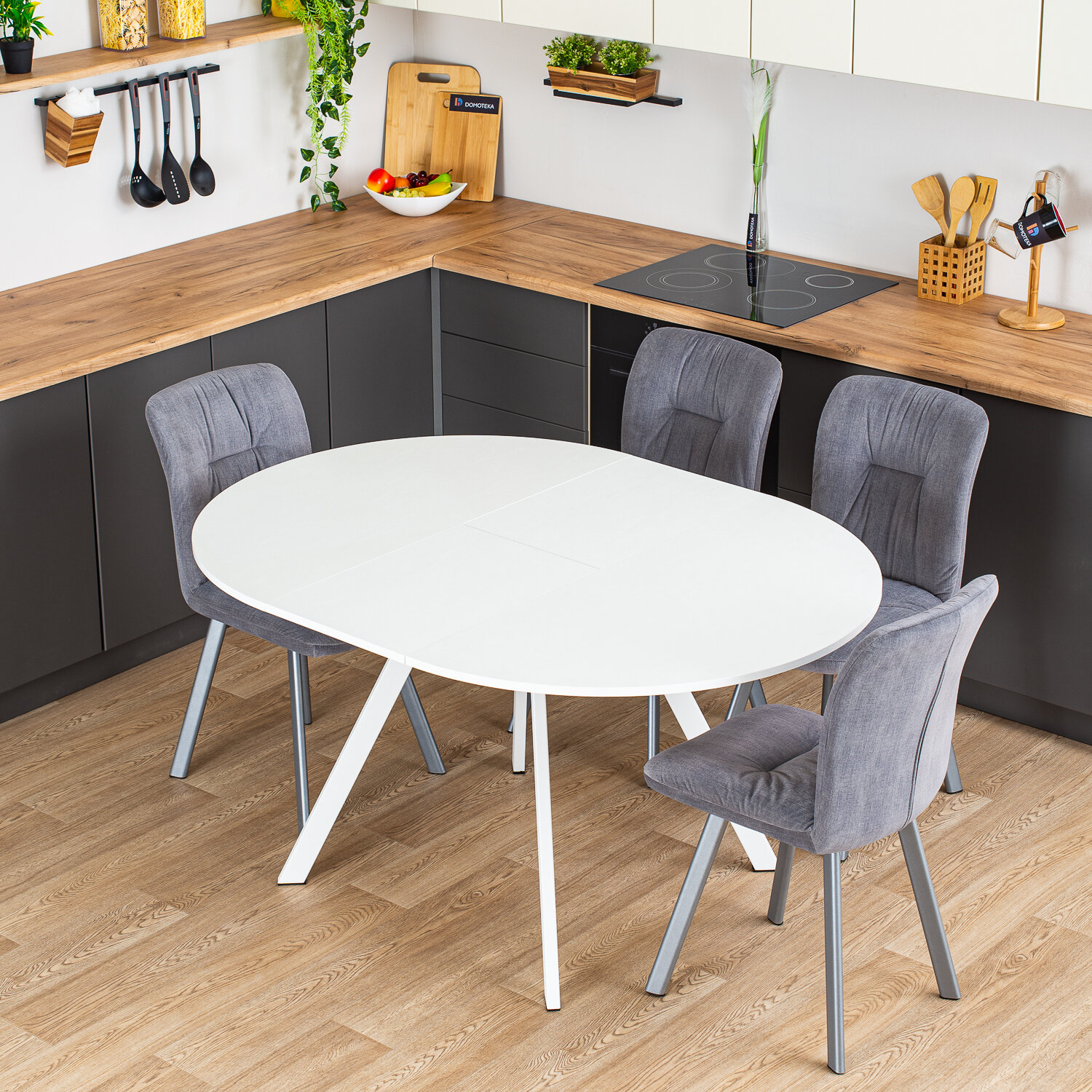 Стол круглый кухонный раздвижной Вита К-1 БЛ 95 ЧР, столешница ЛДСП, раскладной, белый