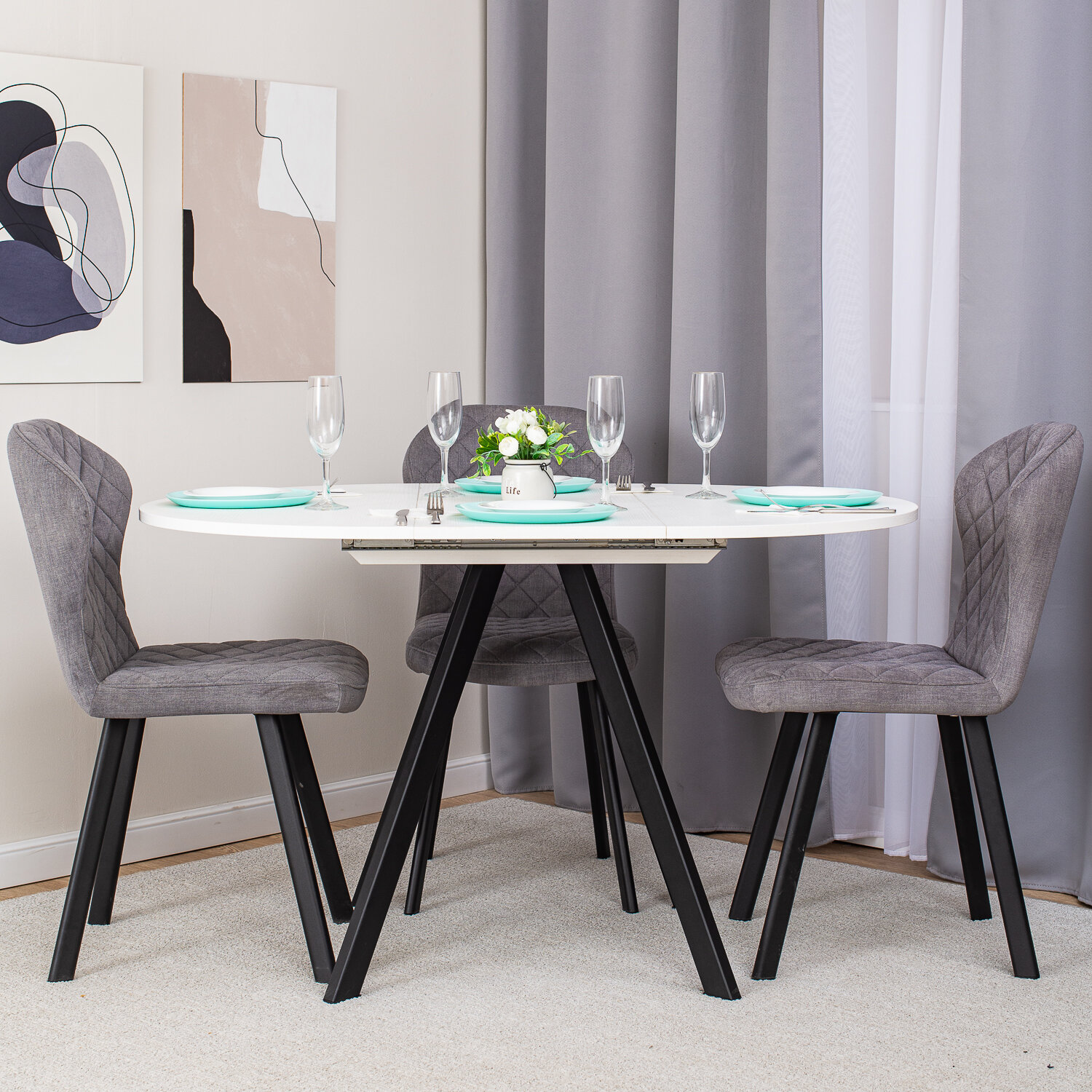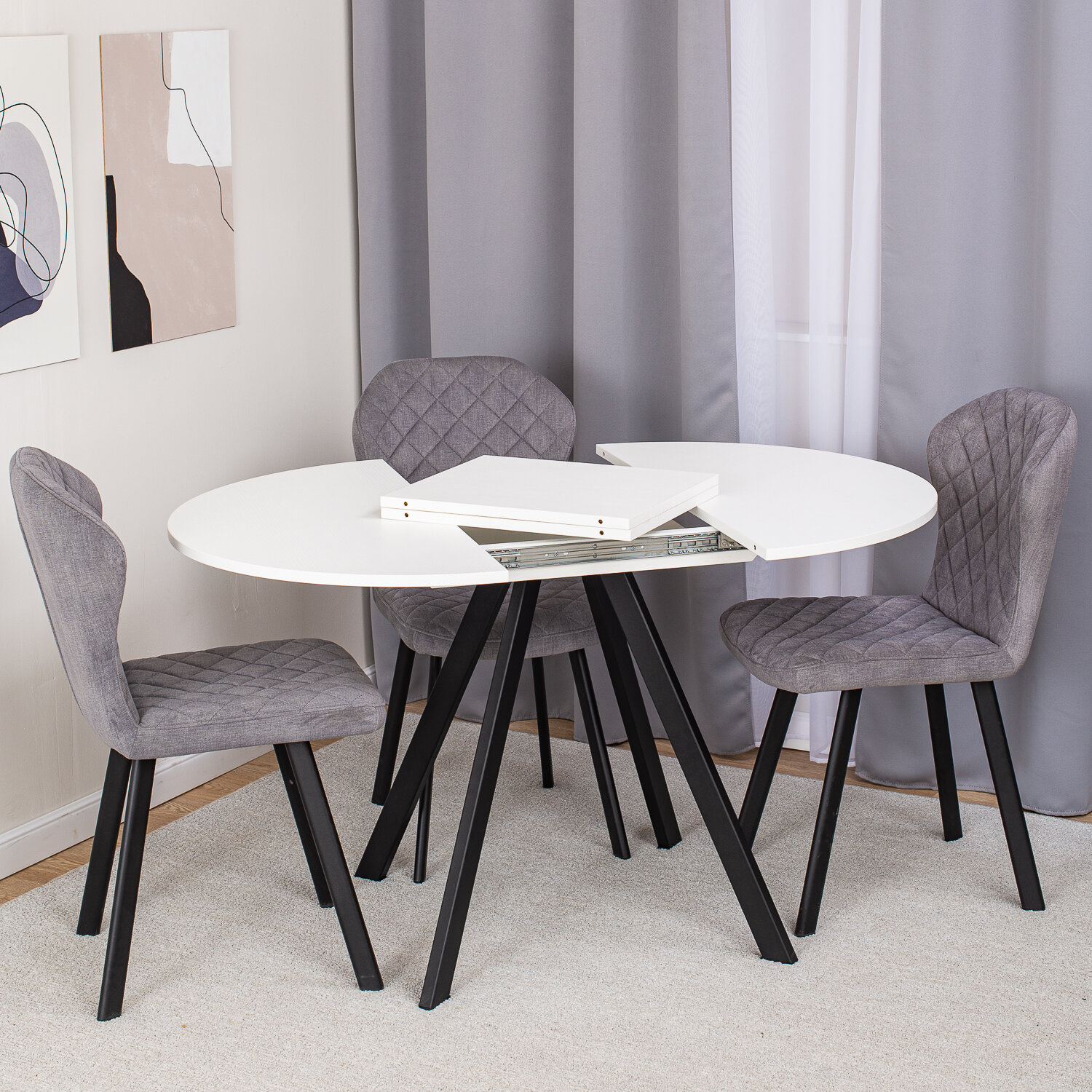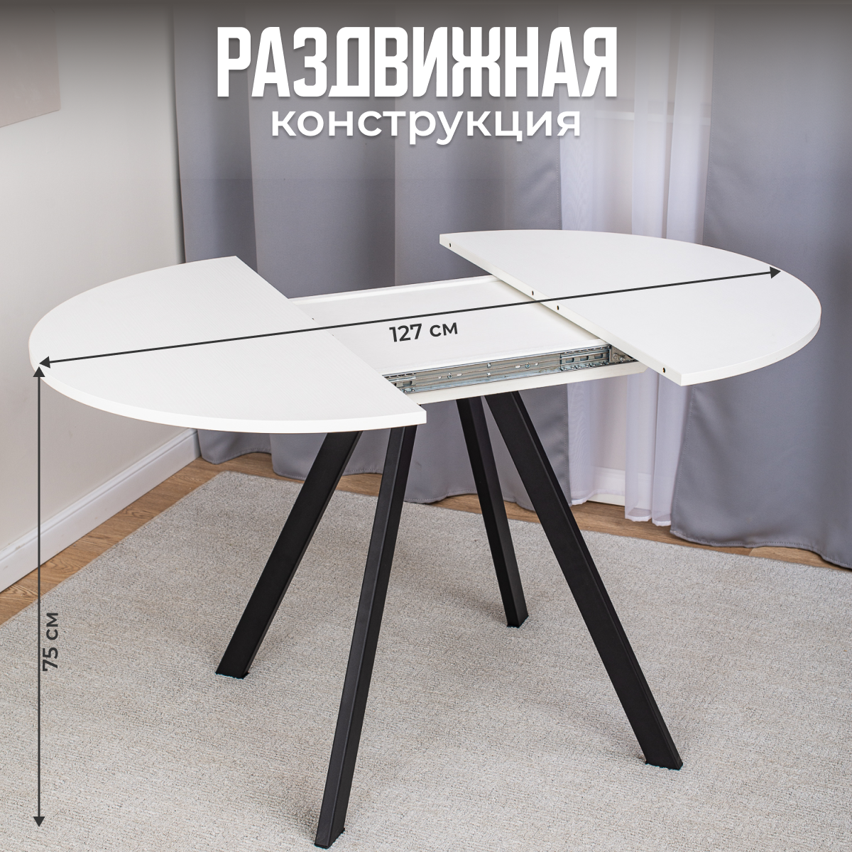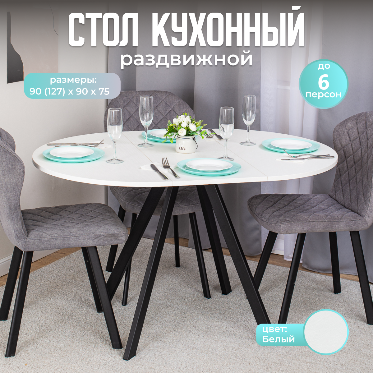 Стол круглый кухонный раздвижной Вита К-1 БЛ 95 ЧР, столешница ЛДСП, раскладной, белый