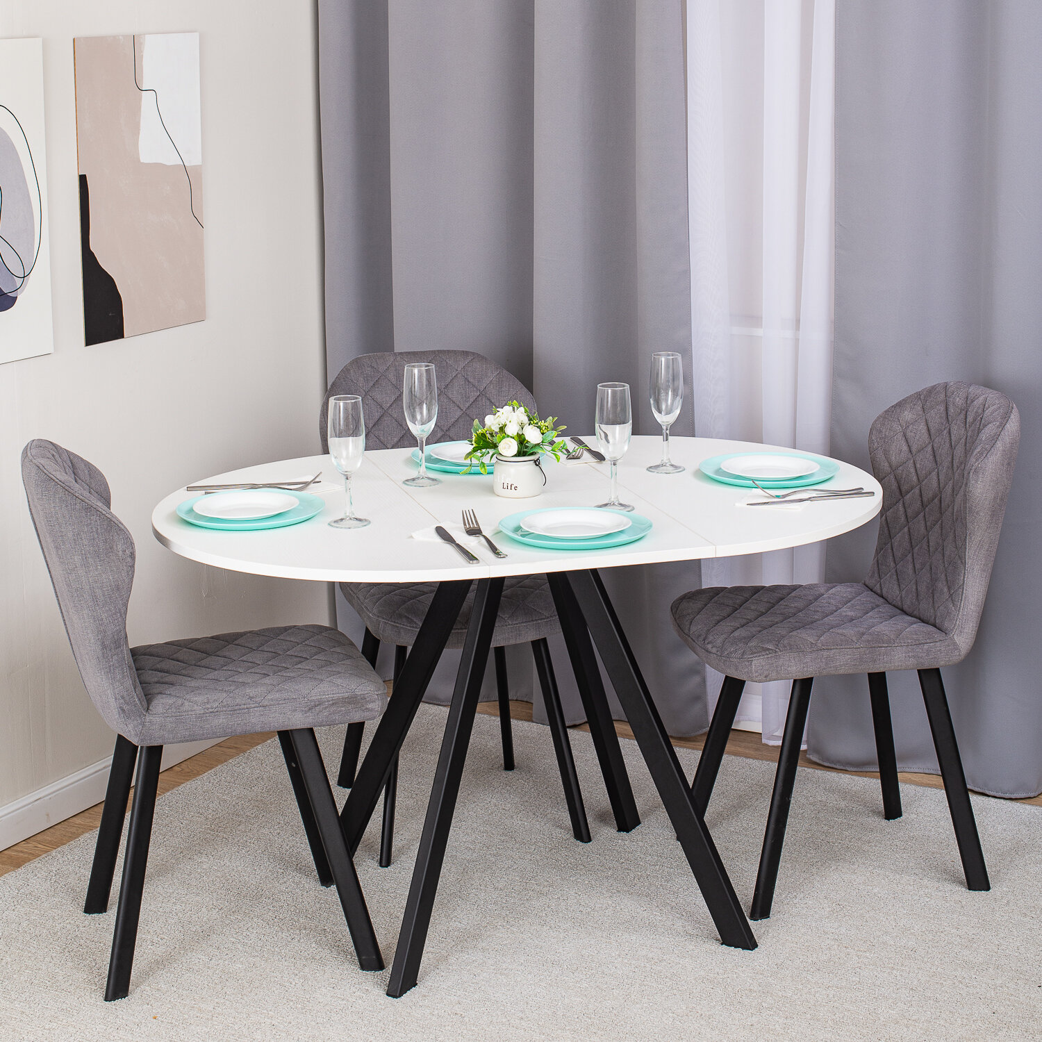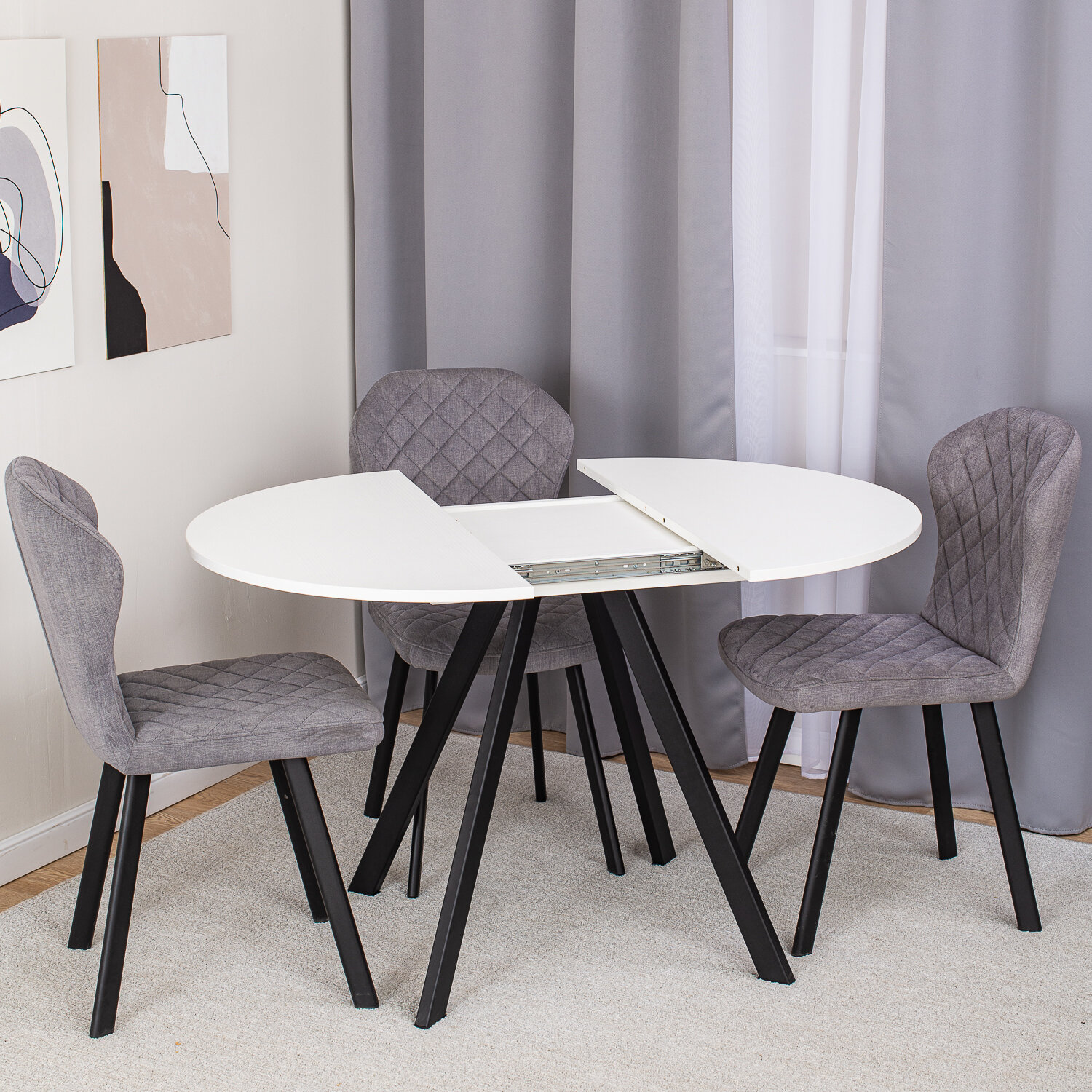 Стол круглый кухонный раздвижной Вита К-2 БЛ 95 ЧР, столешница ЛДСП, раскладной, белый, черный