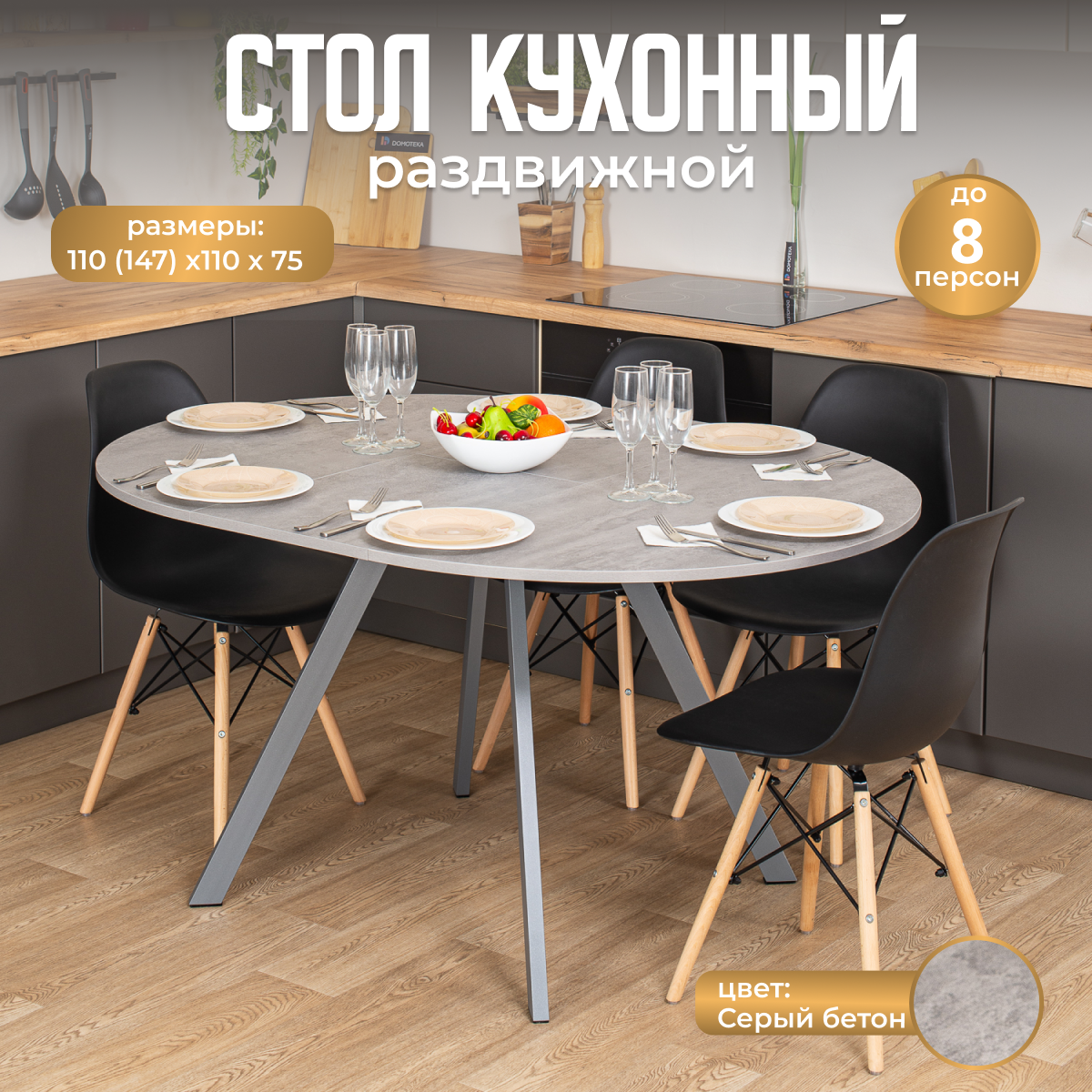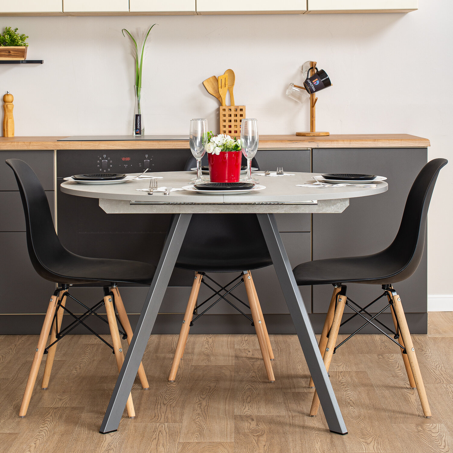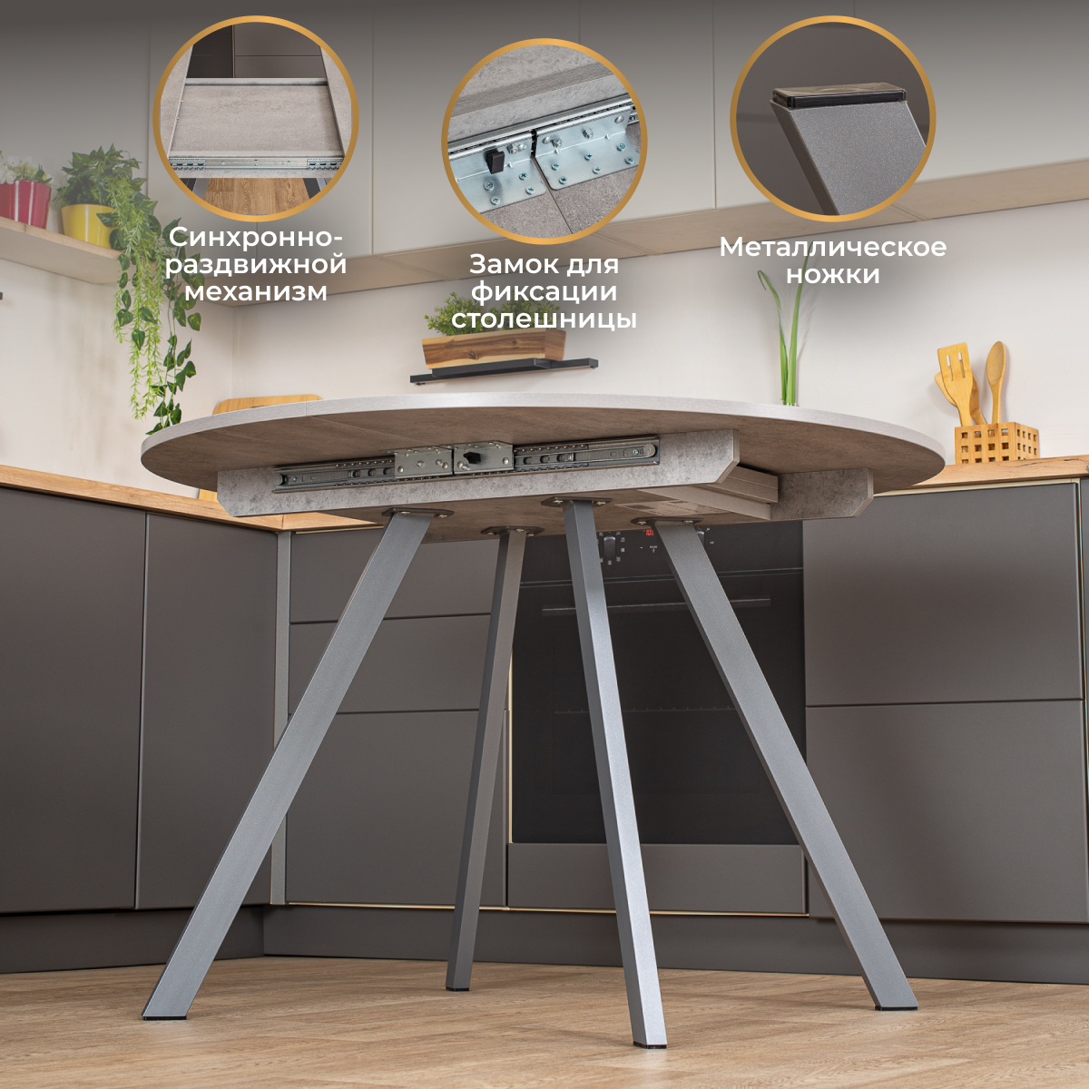 Стол круглый кухонный раздвижной Вита К СБ 95 ЧР, столешница ЛДСП, раскладной, серый, черный