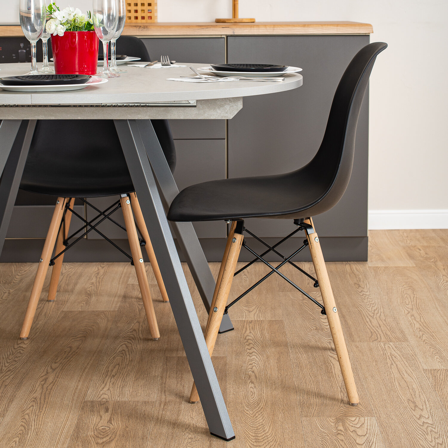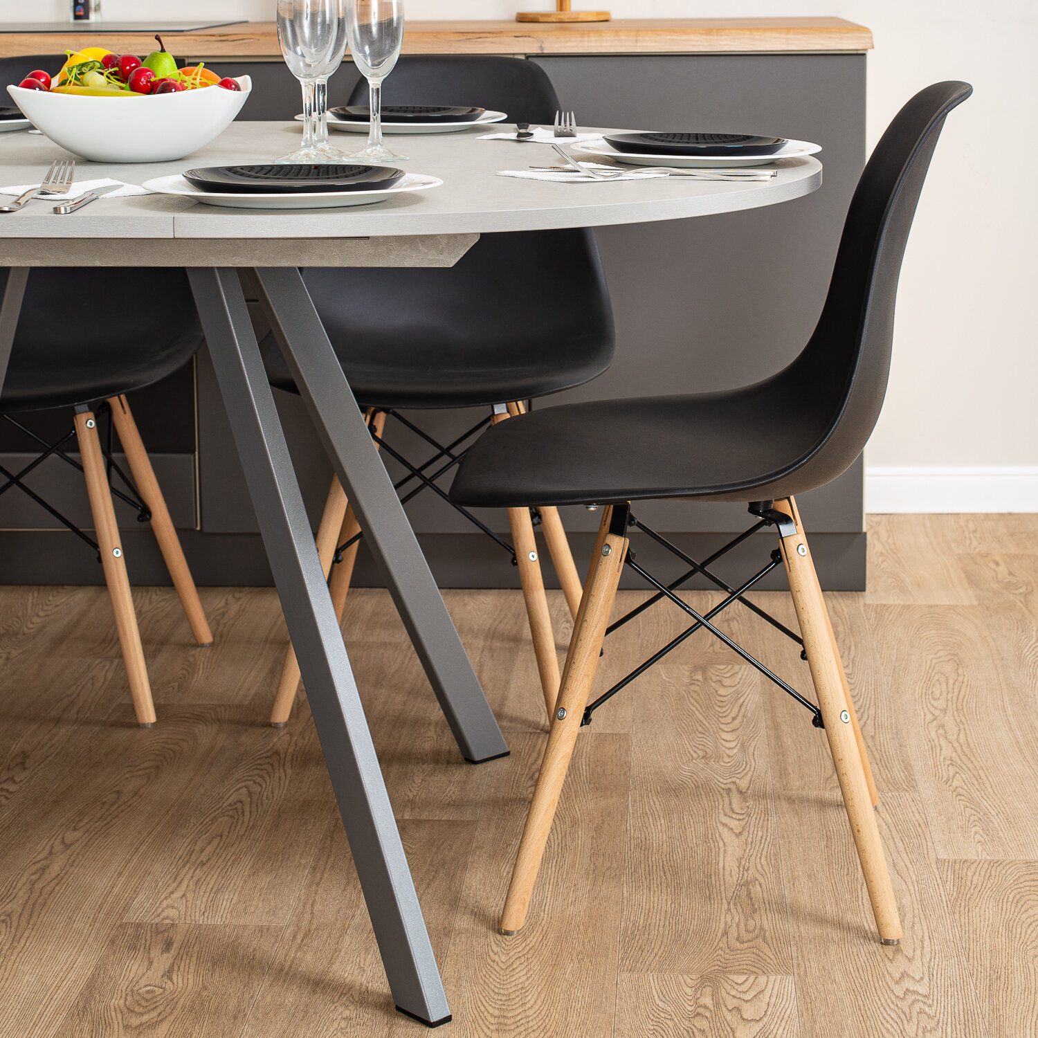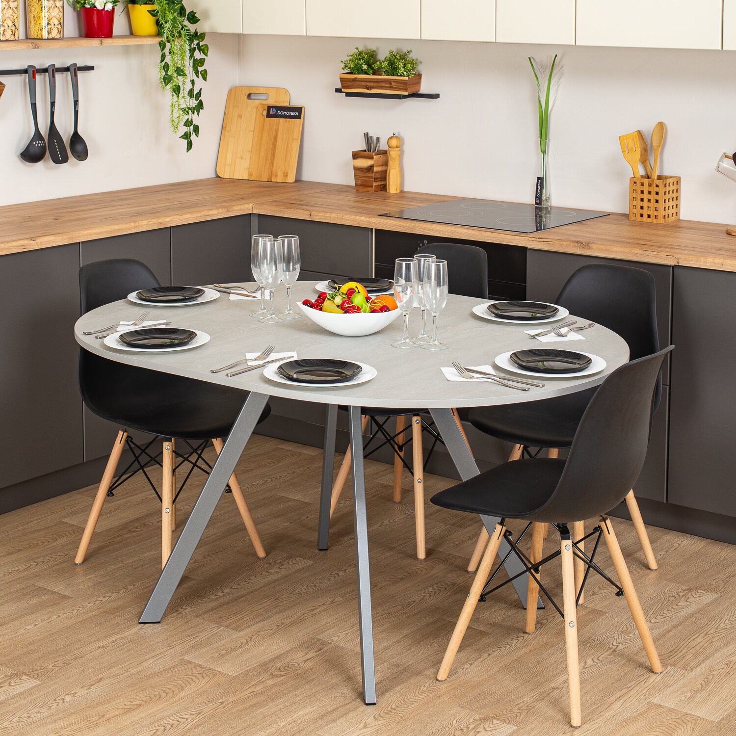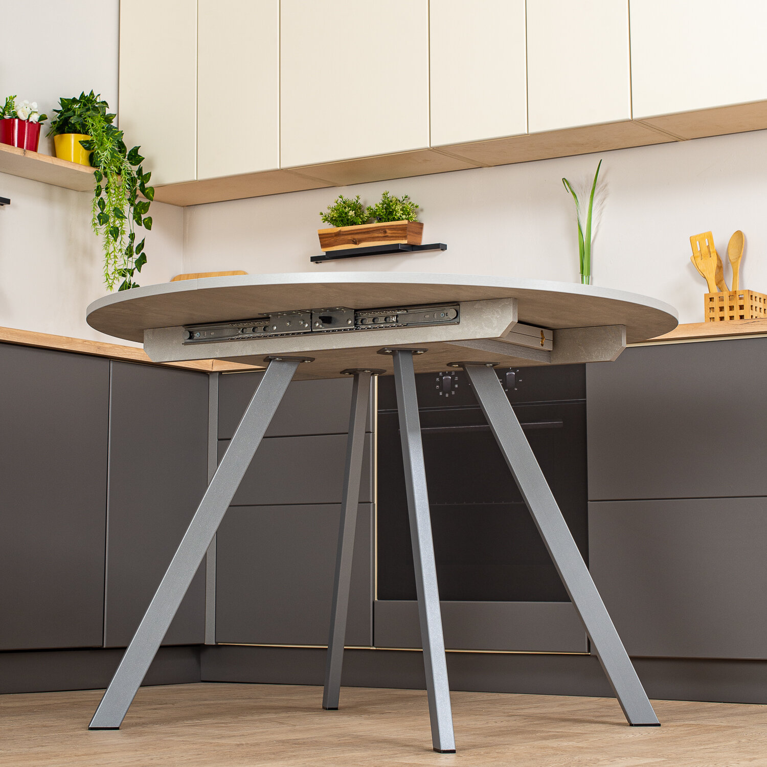 Стол круглый кухонный раздвижной Вита К СБ 95 ЧР, столешница ЛДСП, раскладной, серый, черный