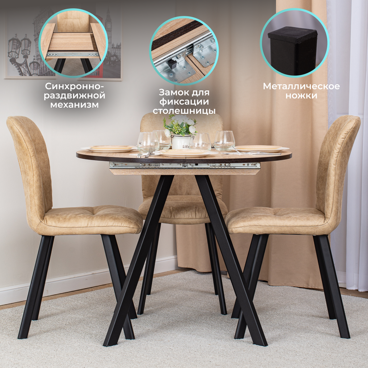 Стол круглый кухонный раздвижной Вита К-2 ДК 95 ЧР, столешница ЛДСП, раскладной, темно-бежевый