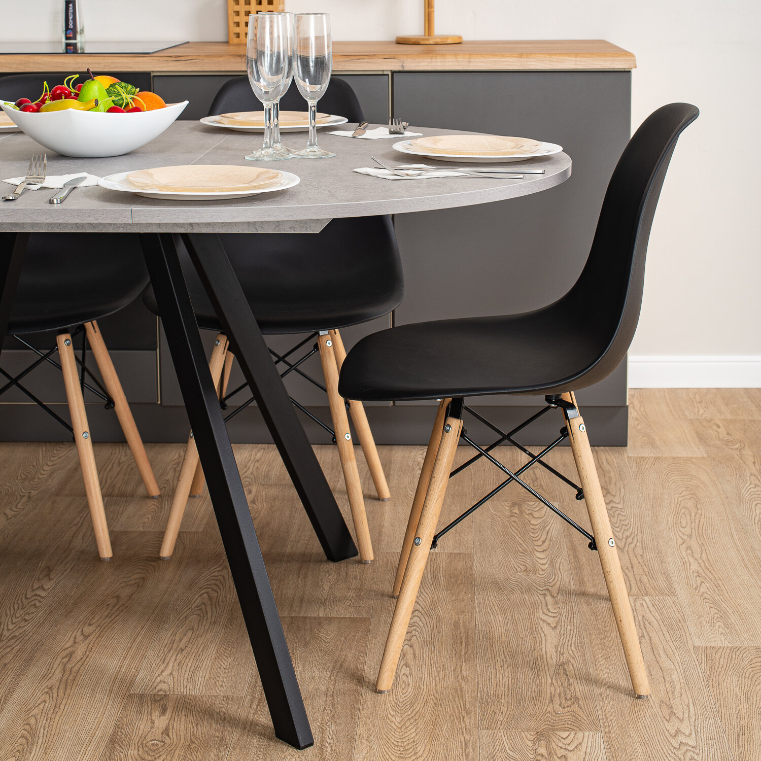 СохранитьСтол круглый кухонный раздвижной Вита К-1 СБ 95 ЧР, столешница ЛДСП, раскладной, серый, черный интересное:
