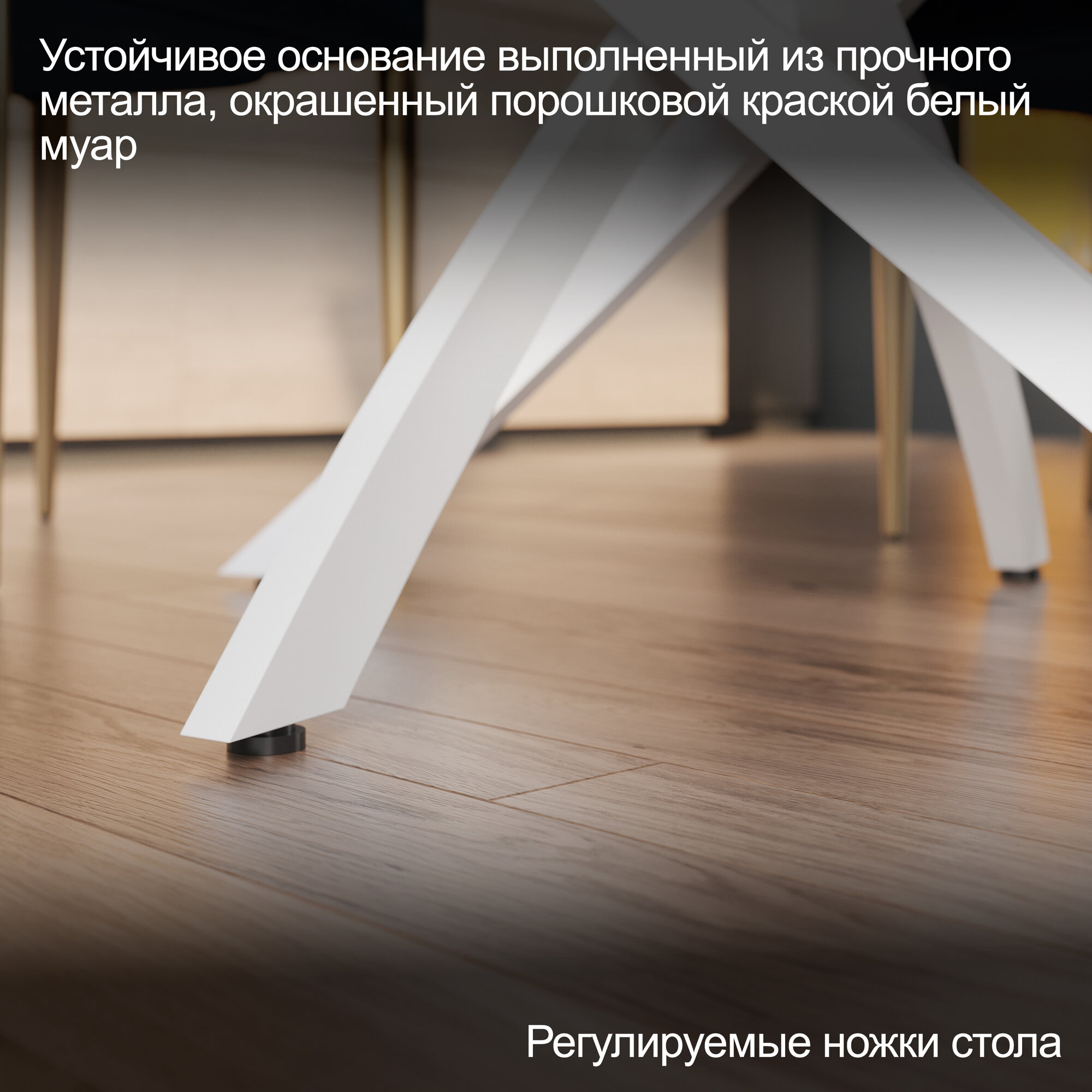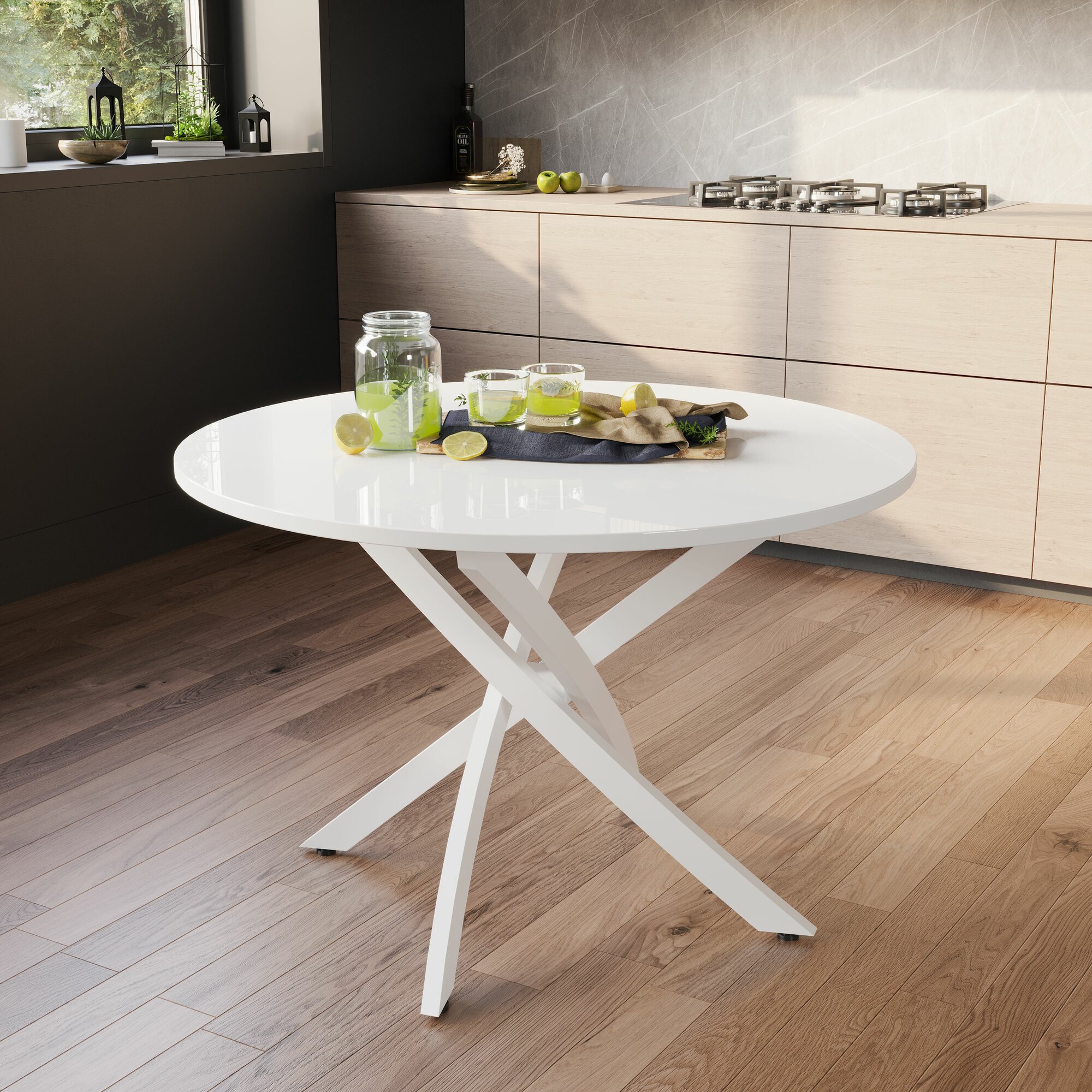 Стол кухонный обеденный круглый раздвижной Муар/Белый Глянец, Диамонд, 100х100х75 см