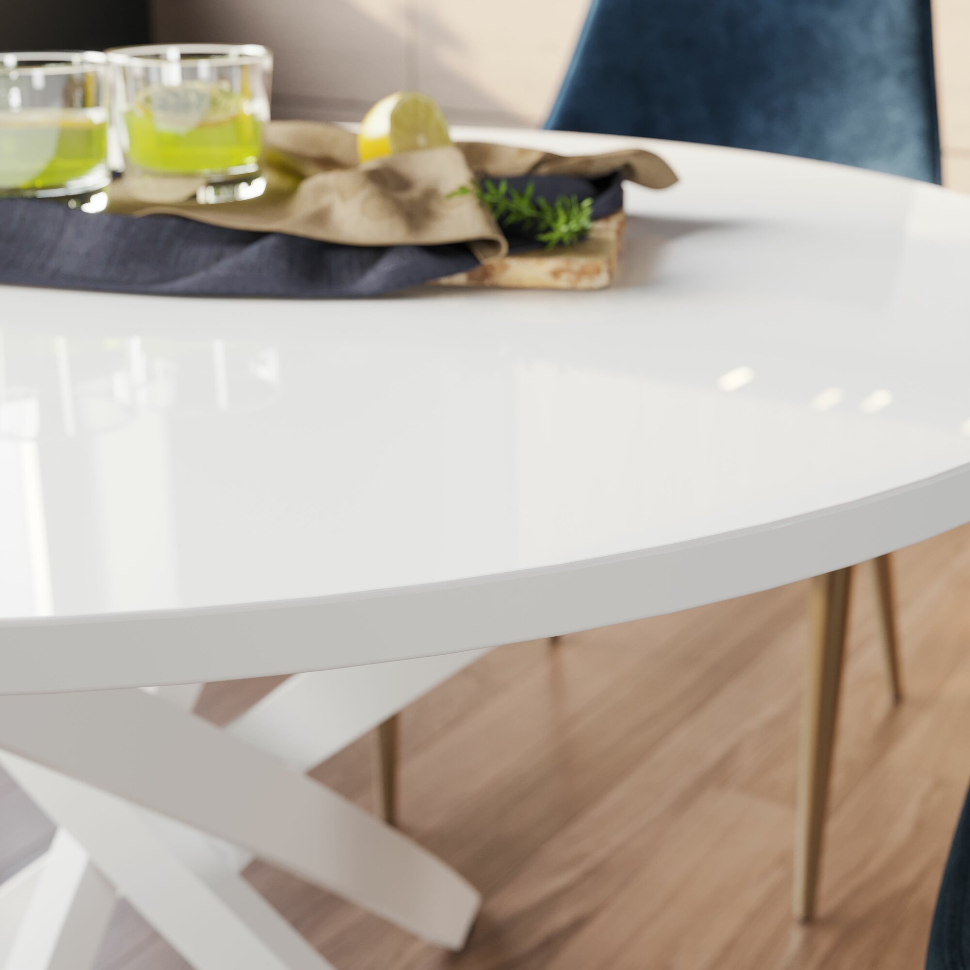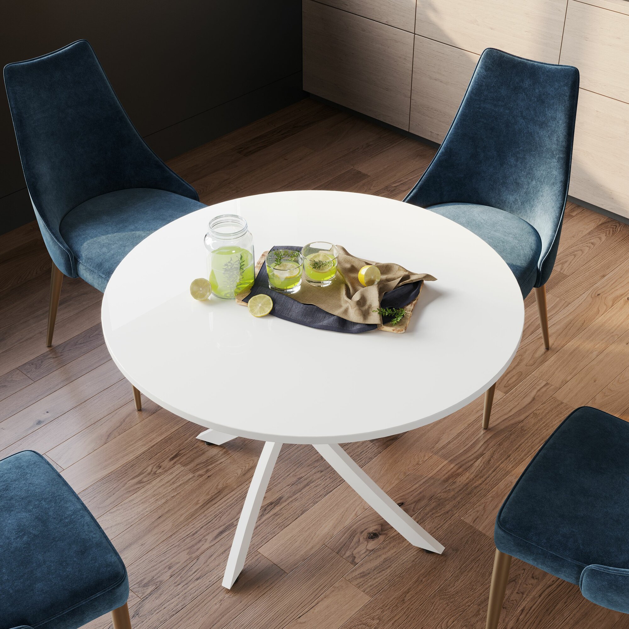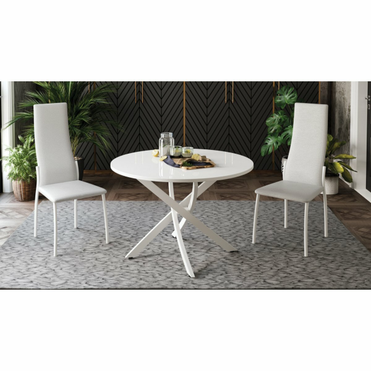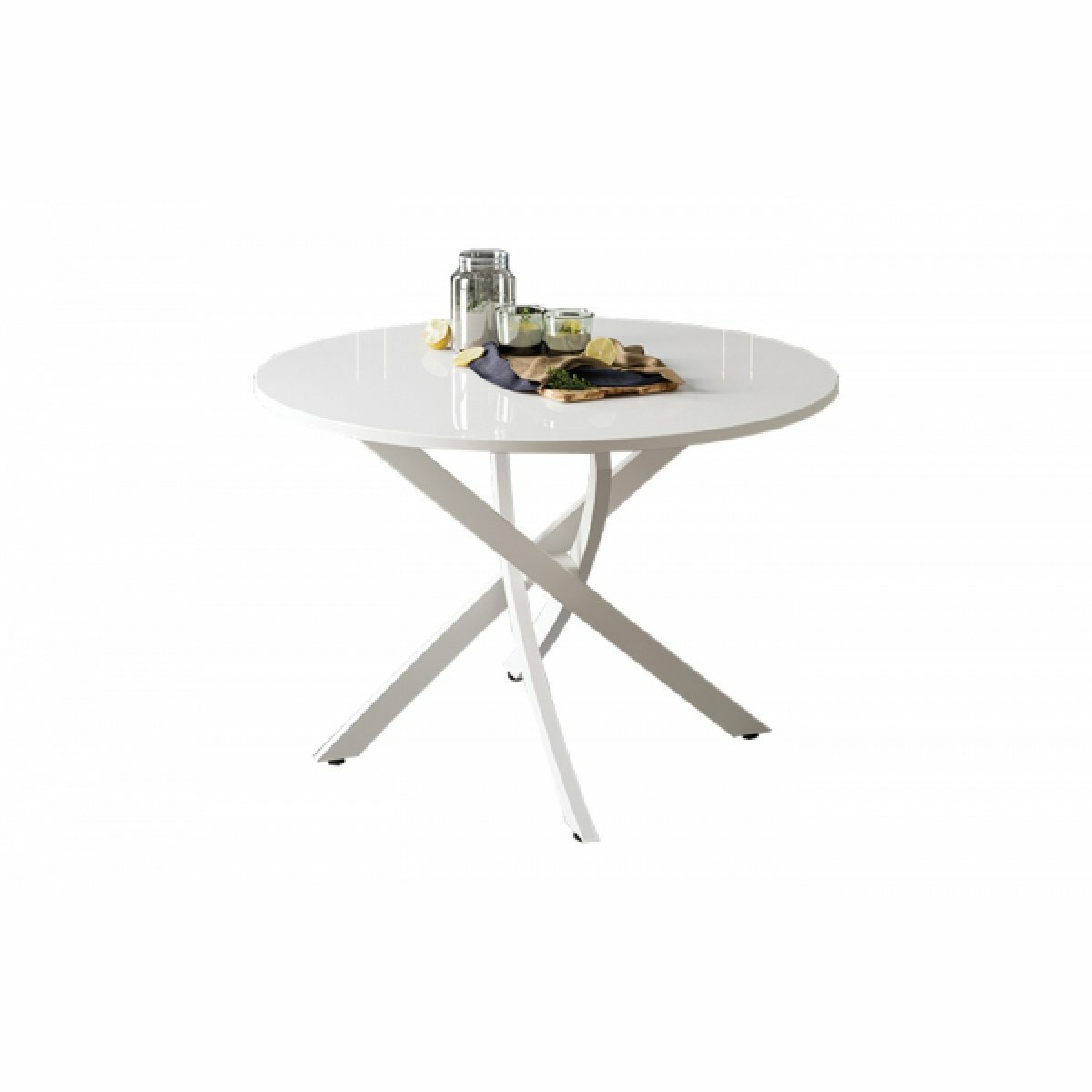 Стол обеденный, круглый, нераскладной Diamond тип 2, ( Белый муар/Белый глянец)