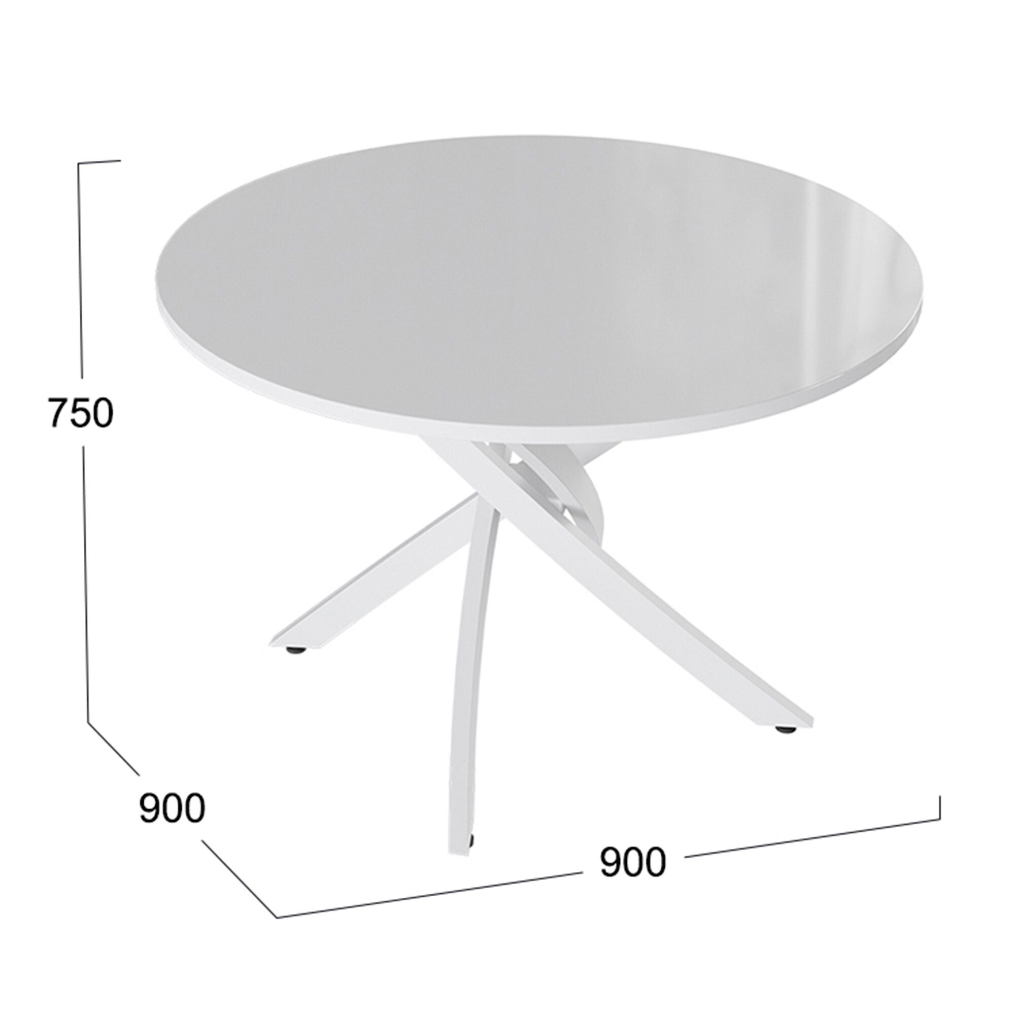 Купить Cтол обеденный круглый на металлических ножках белый (ВхШхГ) 75х90х90 см, Diamond Тип 2