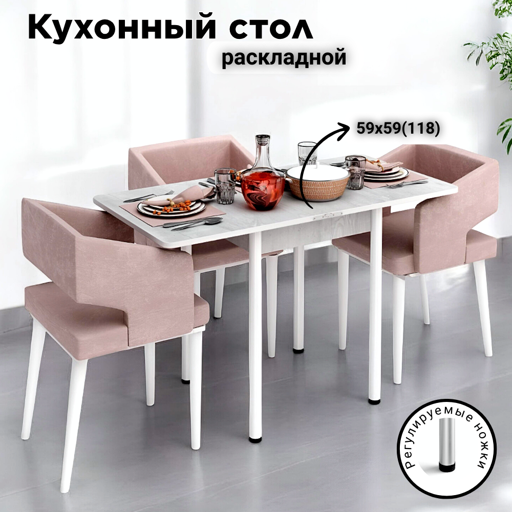 Купить Стол обеденный раскладной для кухни, столовой, дачи и дома, ЛДСП, с металлическими ножками, размеры 60х60 см, высота 76 см, КЕА, цвет Бетон пайн белый
