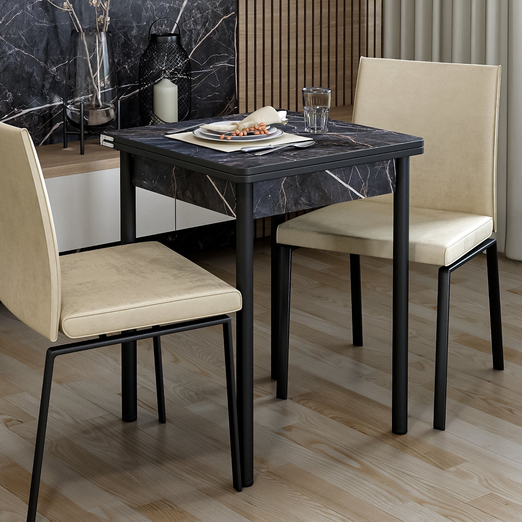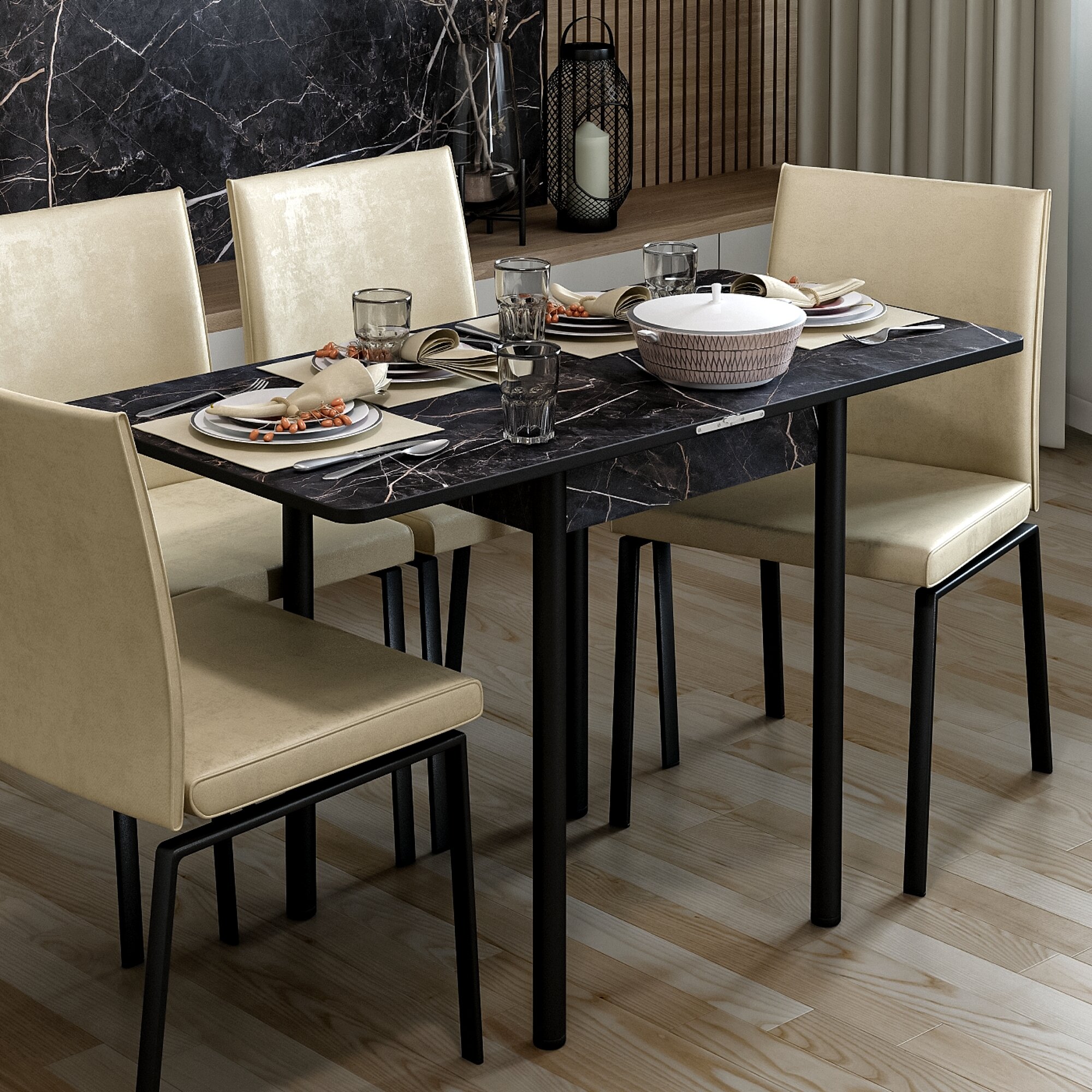 Стол обеденный раскладной для кухни, столовой, дачи и дома, ЛДСП, с металлическими ножками, размеры 60х60 см, высота 76 см, КЕА, цвет Слейт черный