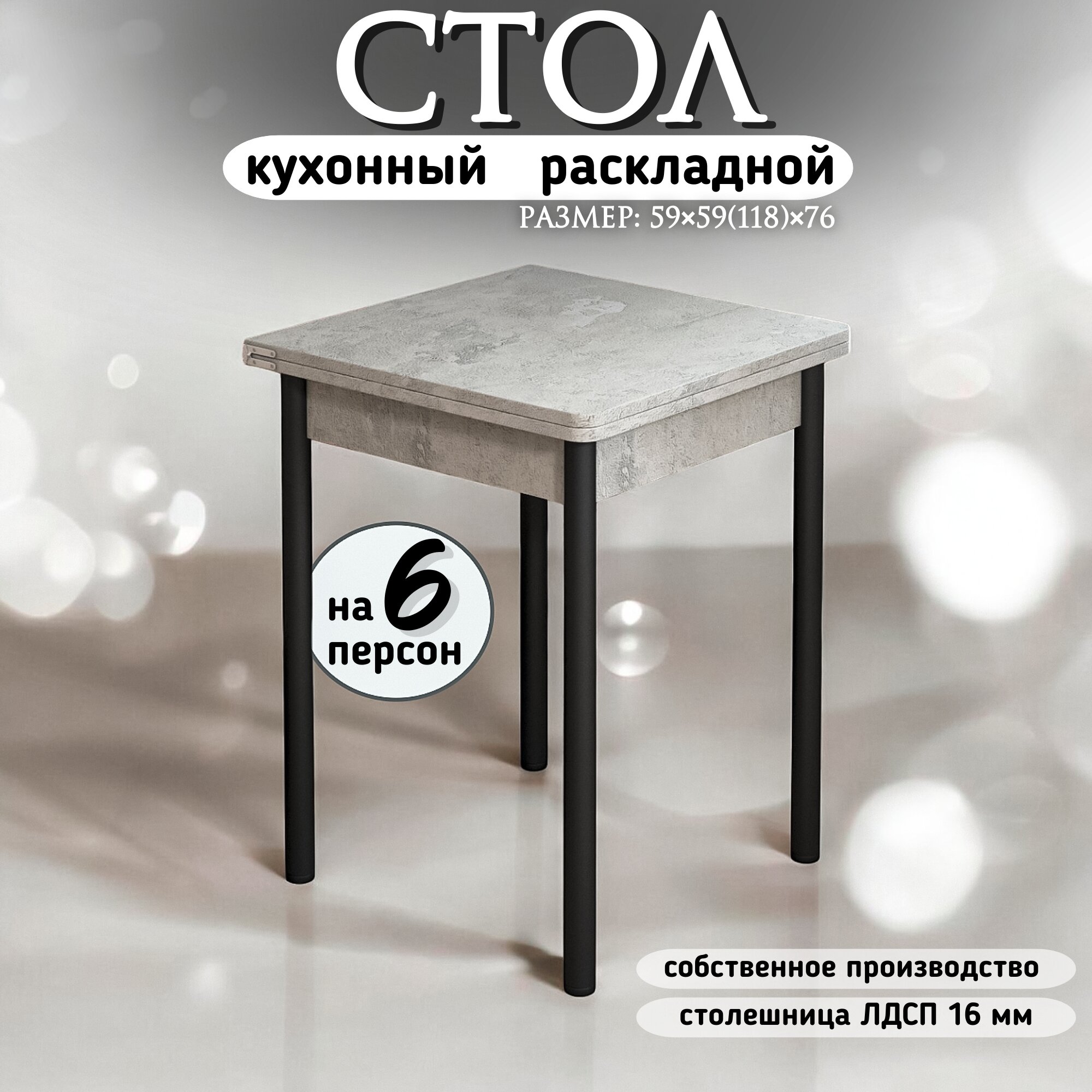 Стол обеденный раскладной для кухни, столовой, дачи и дома, ЛДСП, с металлическими ножками, размеры 60х60 см, высота 76 см, КЕА, цвет Бетон пайн белый