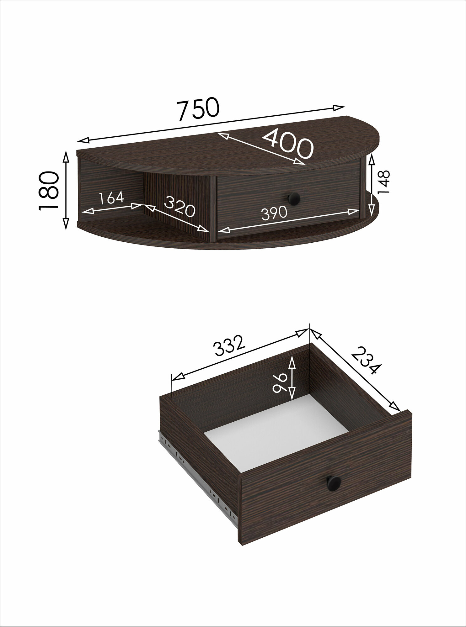СохранитьТуалетный столик №4 с ящиком и полкой гримерный косметический журнальный подвесной в спальню детскую без зеркала пенал тумба ЛДСП 75х40х18см венге интересное: