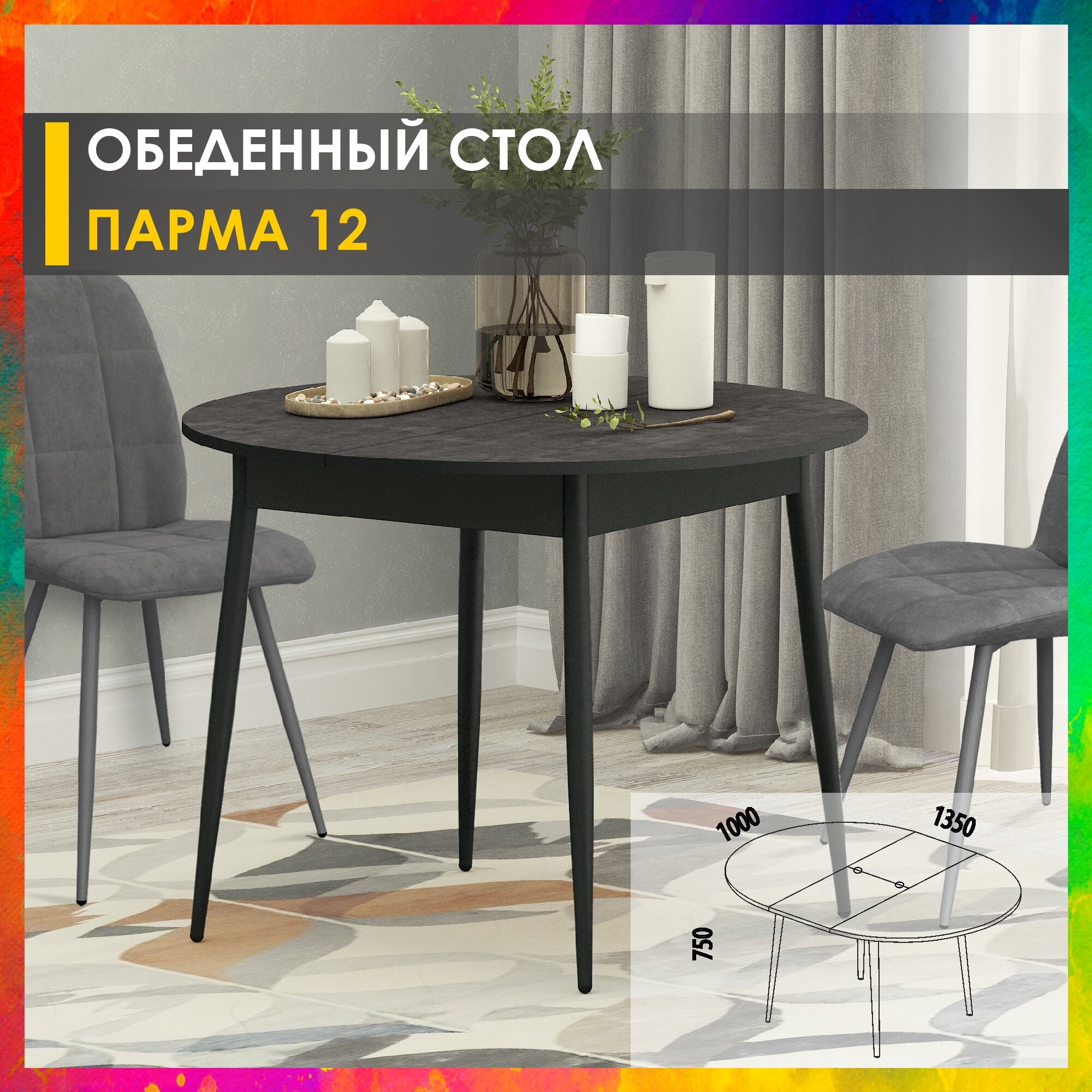 Купить Стол обеденный круглый раздвижной Парма 12 (01) Антрацит/Оникс, 100х100х75 см