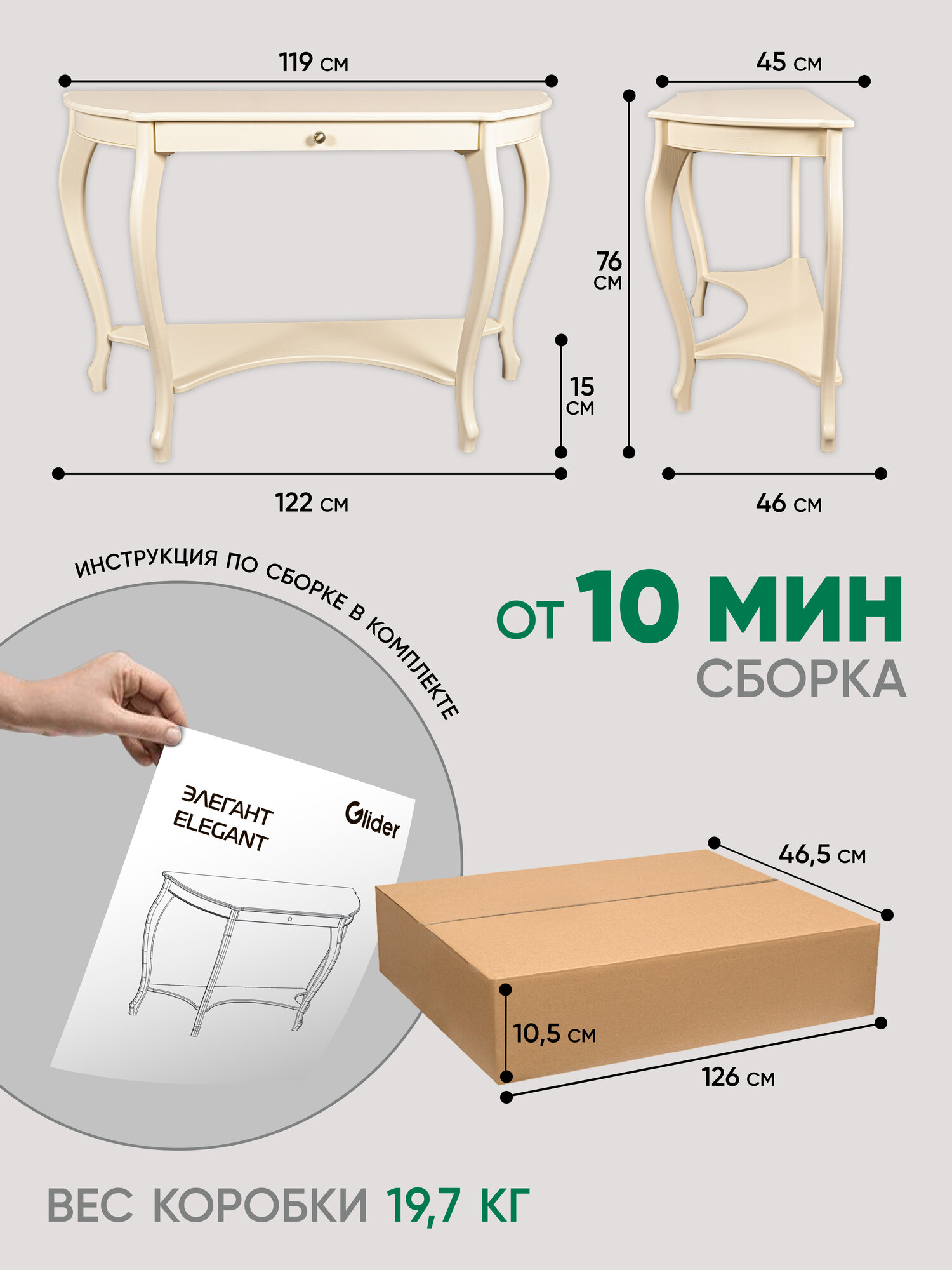 СохранитьТуалетный столик, большая консоль Элегант с ящиком и полкой, 125*44*77 см, цвет дуб бежевый интересное: