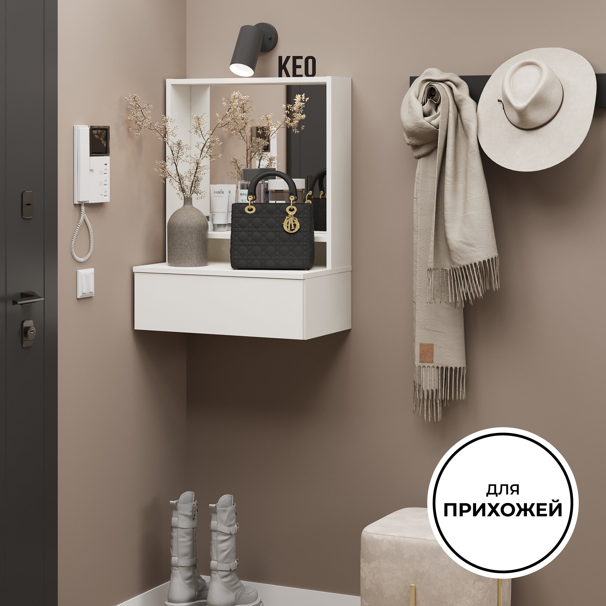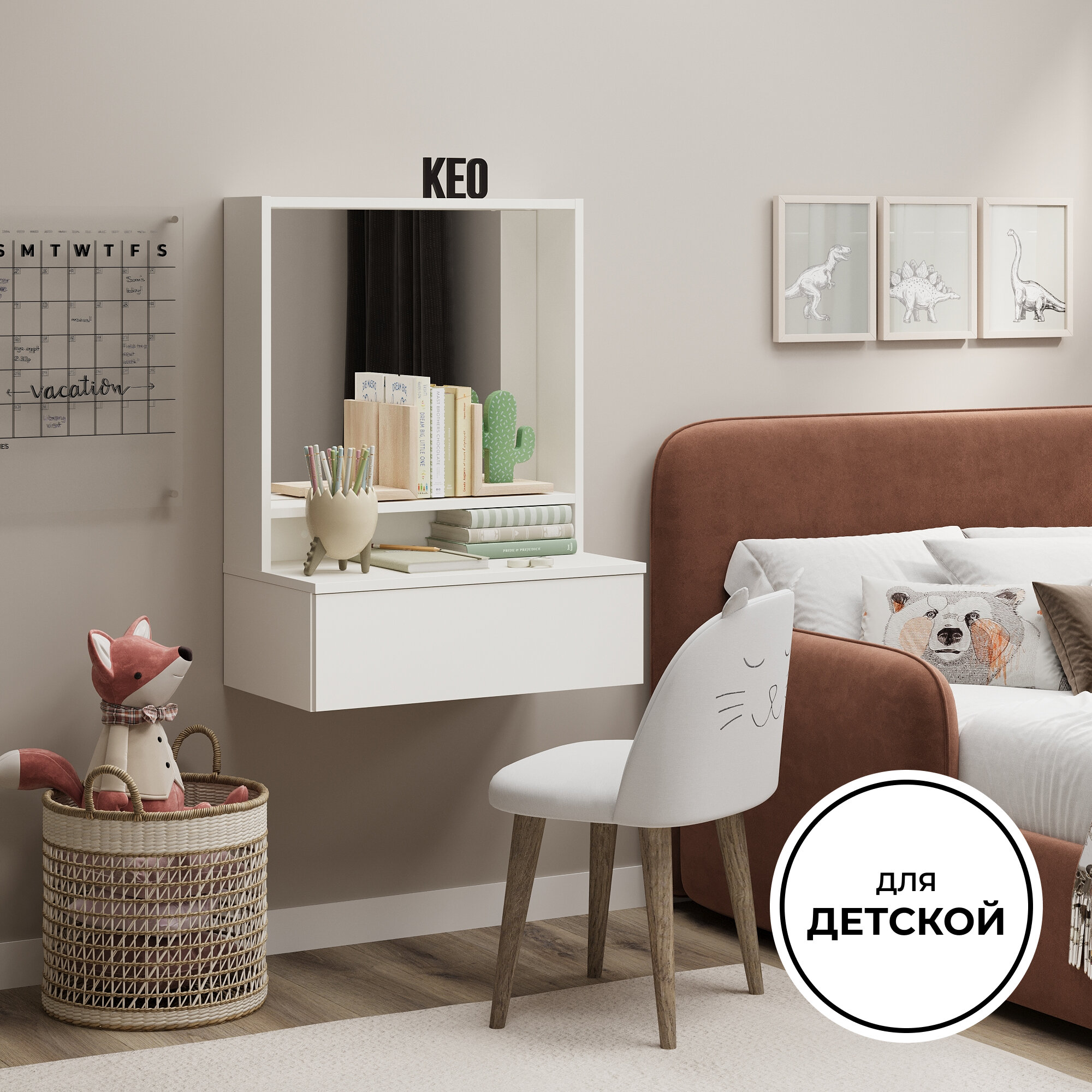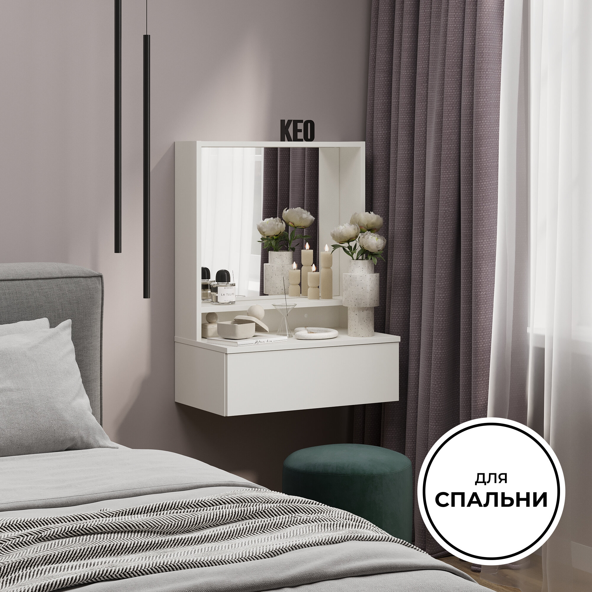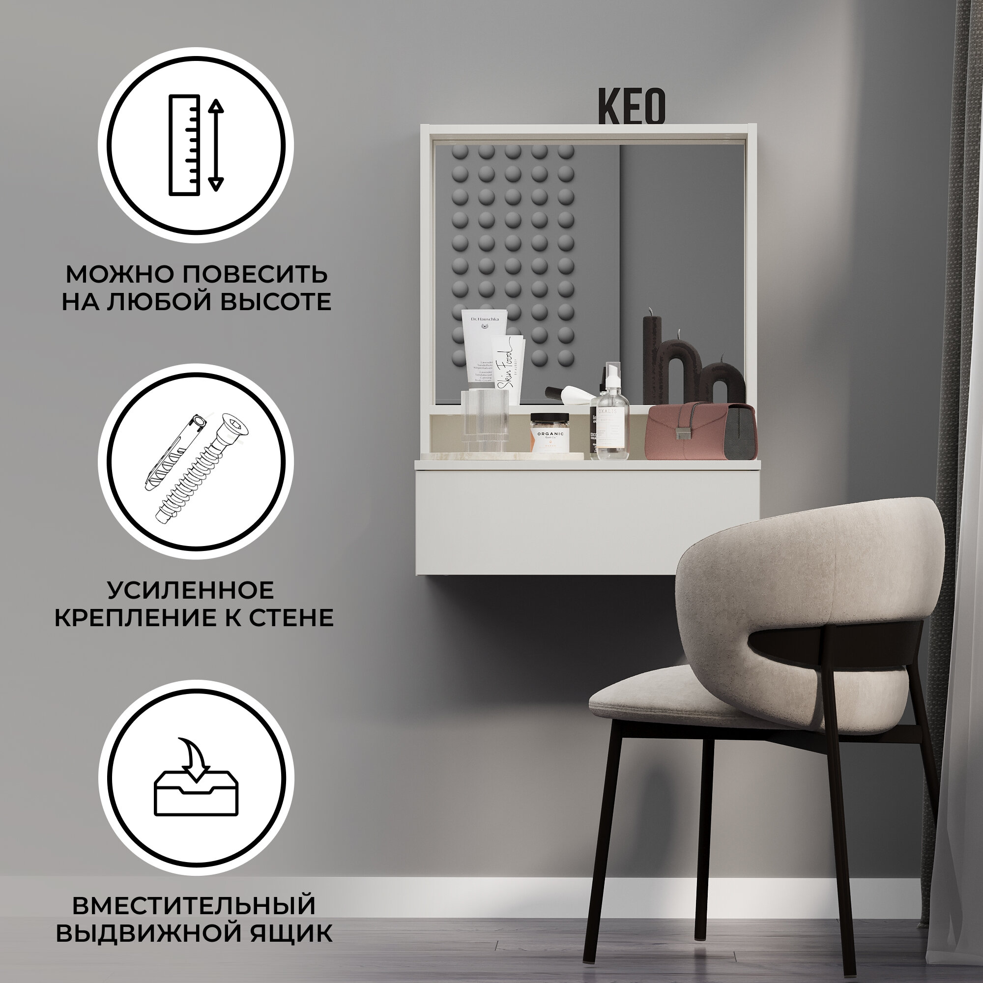 Подвесной стол с зеркалом и ящиком для спальной комнаты Кео СЛТ-402 молочный белый интересное: