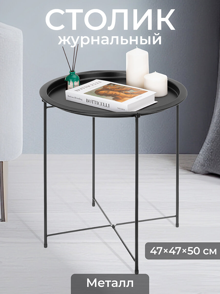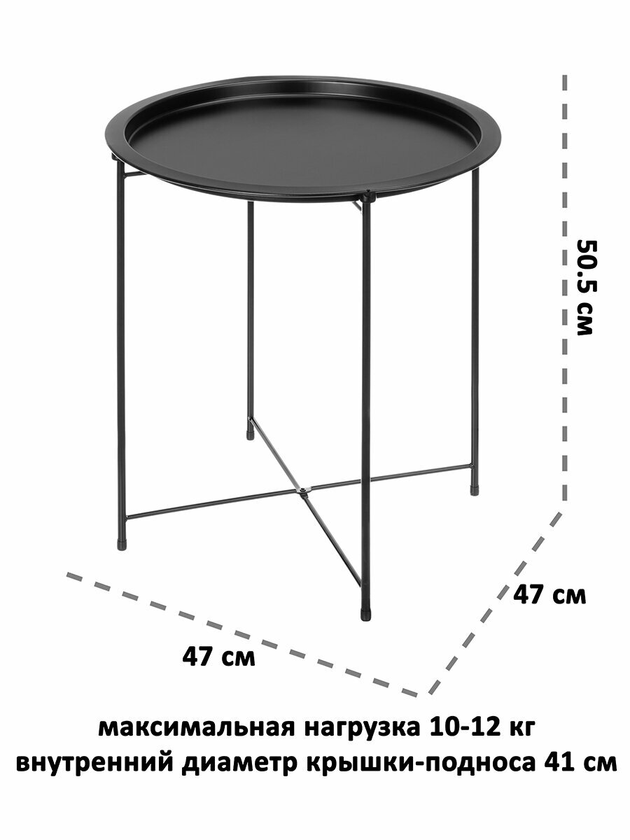 | Дополнительная информация | Столик журнальный "Черный" 47х47х50,5 см, со съёмной крышкой-подносом 47х47х2,3 см, максимальная нагрузка 10-12 кг, внутренний диаметр крышки-подноса 41 см |