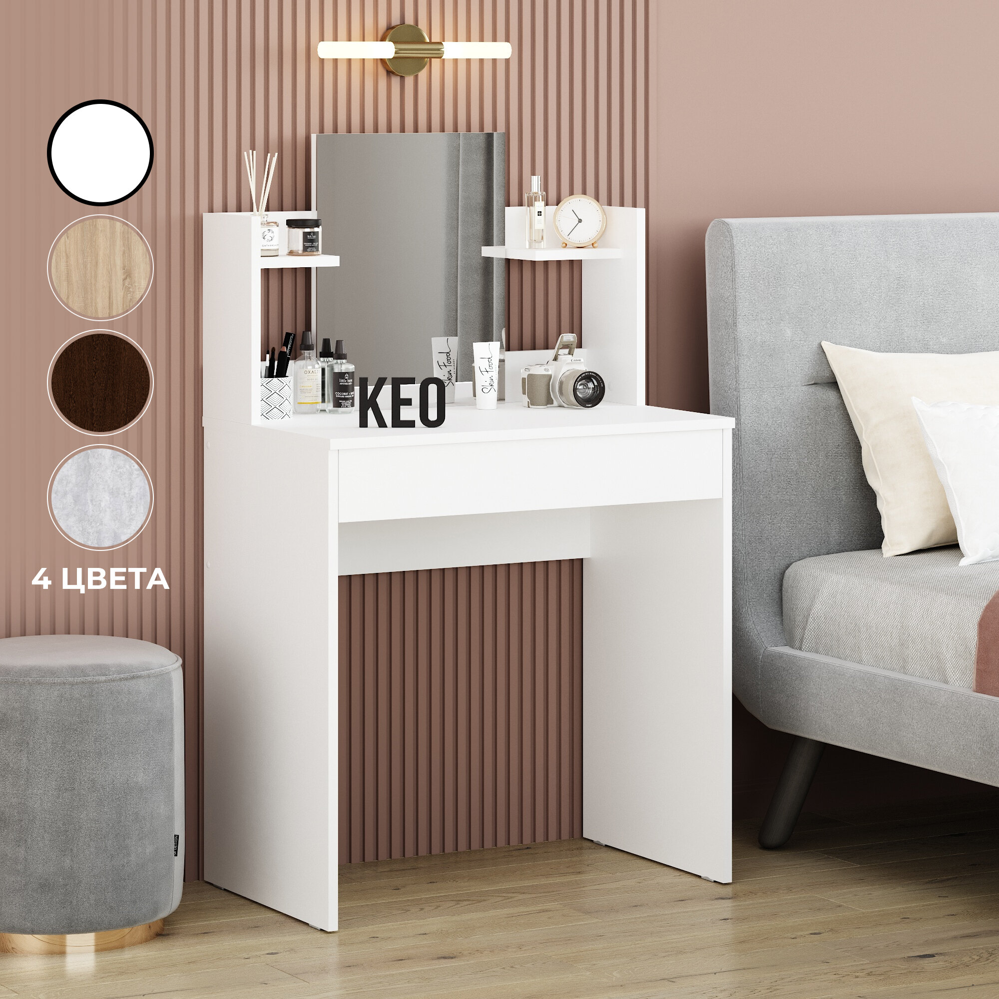 Туалетный столик с зеркалом и открытыми полками в спальню для девочки Кео СТМ-1202 белый интересное: