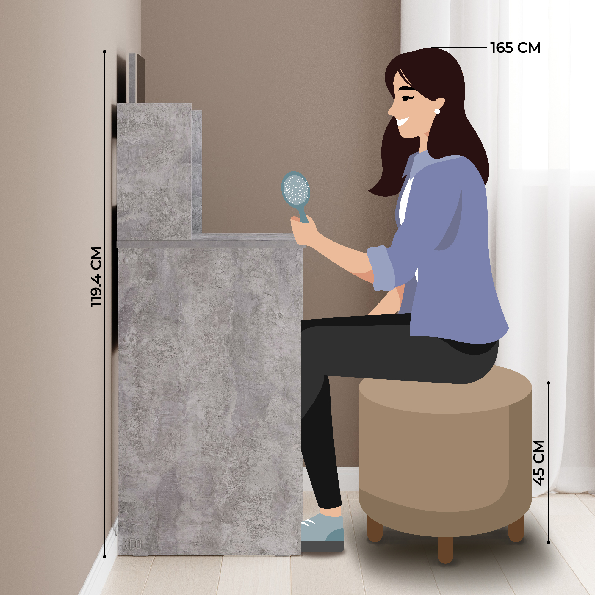 Купить Туалетный столик с зеркалом и открытыми полками в спальню для хранения косметики и украшений серый Кео СТМ-1202 цвет бетон