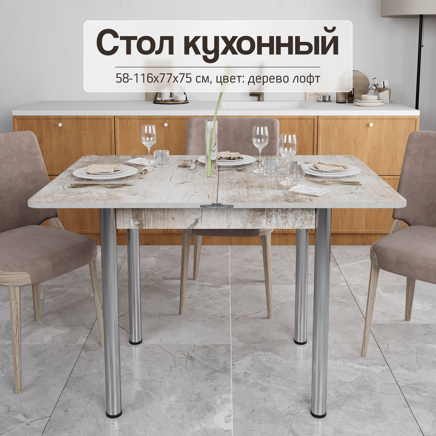 Стол обеденный Раскладной Стол кухонный обеденный раскладной прямоугольный Ломбер, 77-116х58х75 интересное: