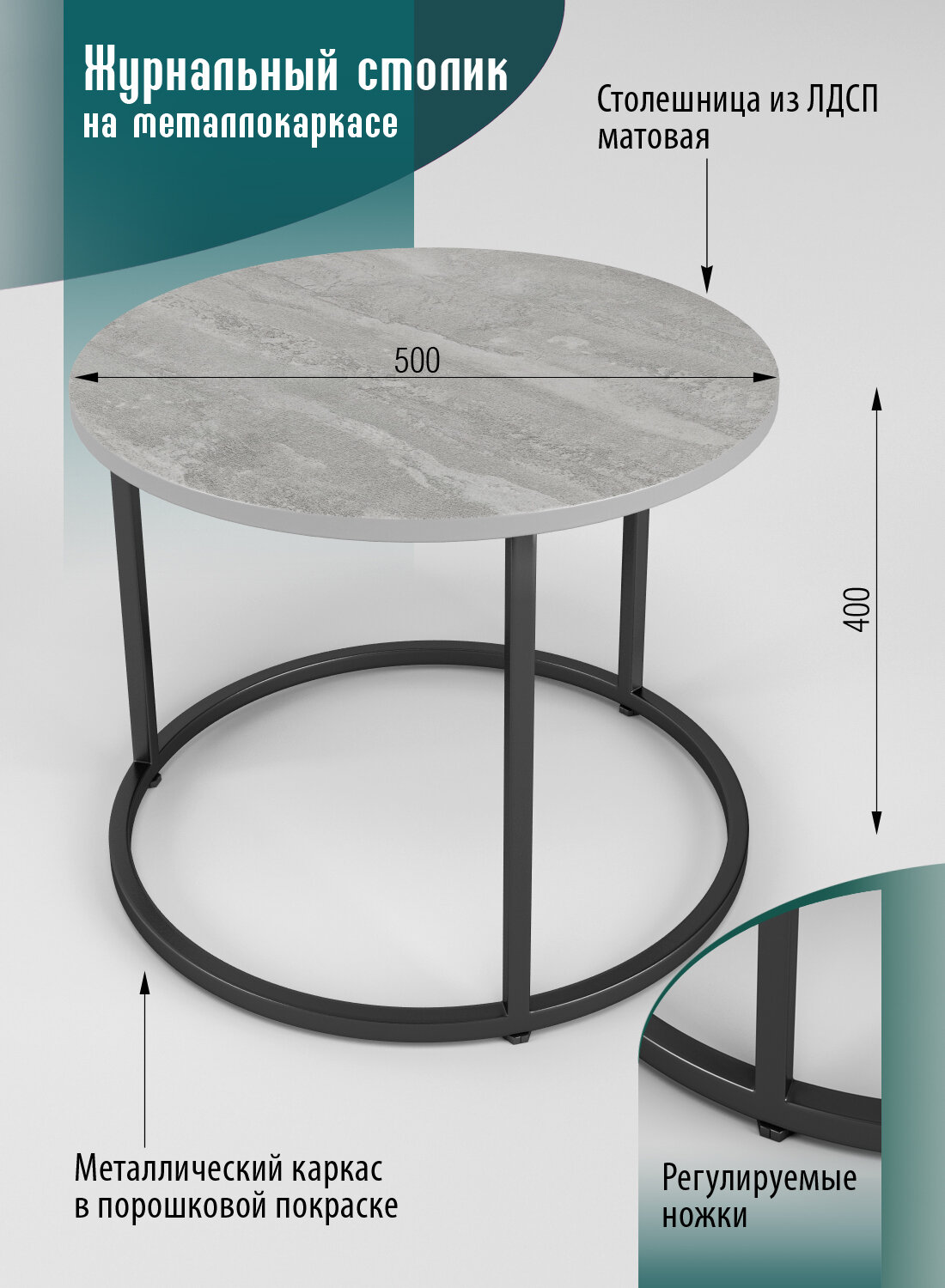 Купить Стол журнальный из ЛДСП гранит/черный/dix
