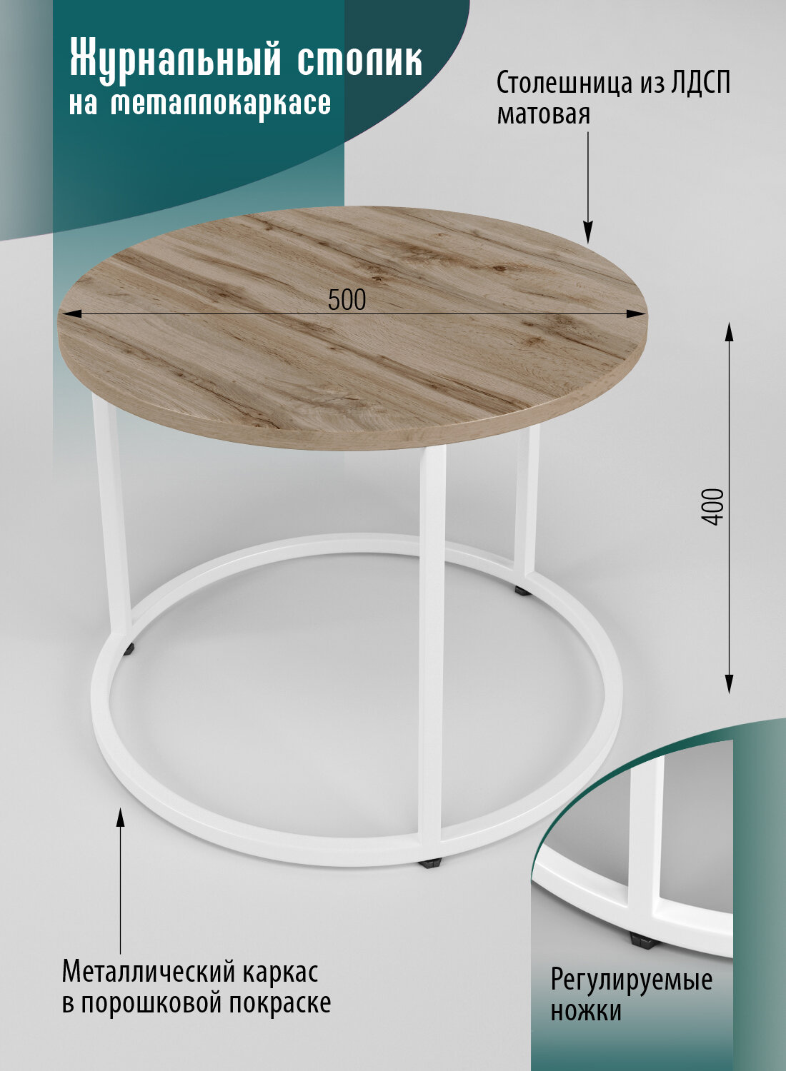 Стол журнальный DiX HOME "Соло", ЛДСП, металлический каркас, круглый, 50х50х40 см