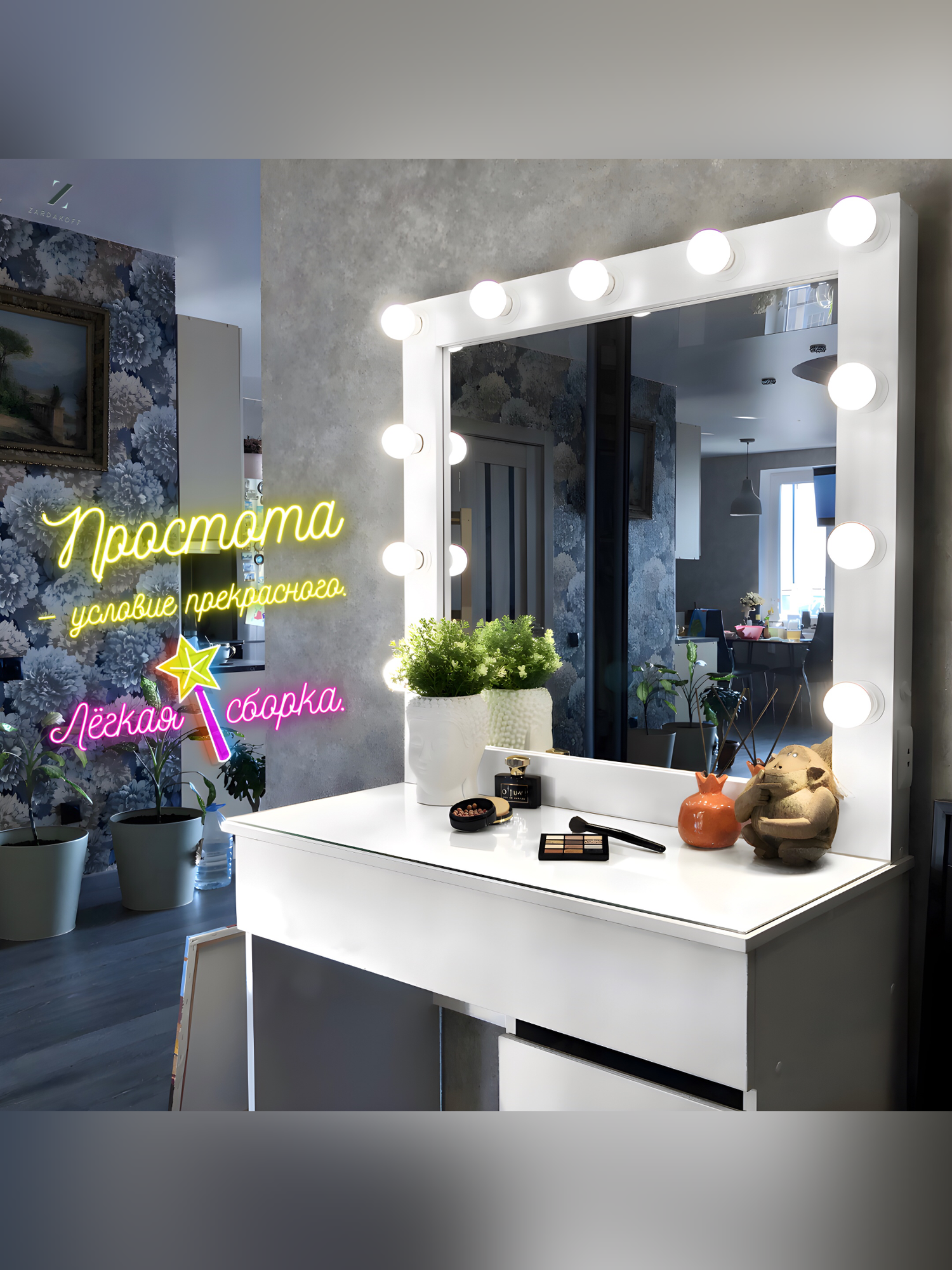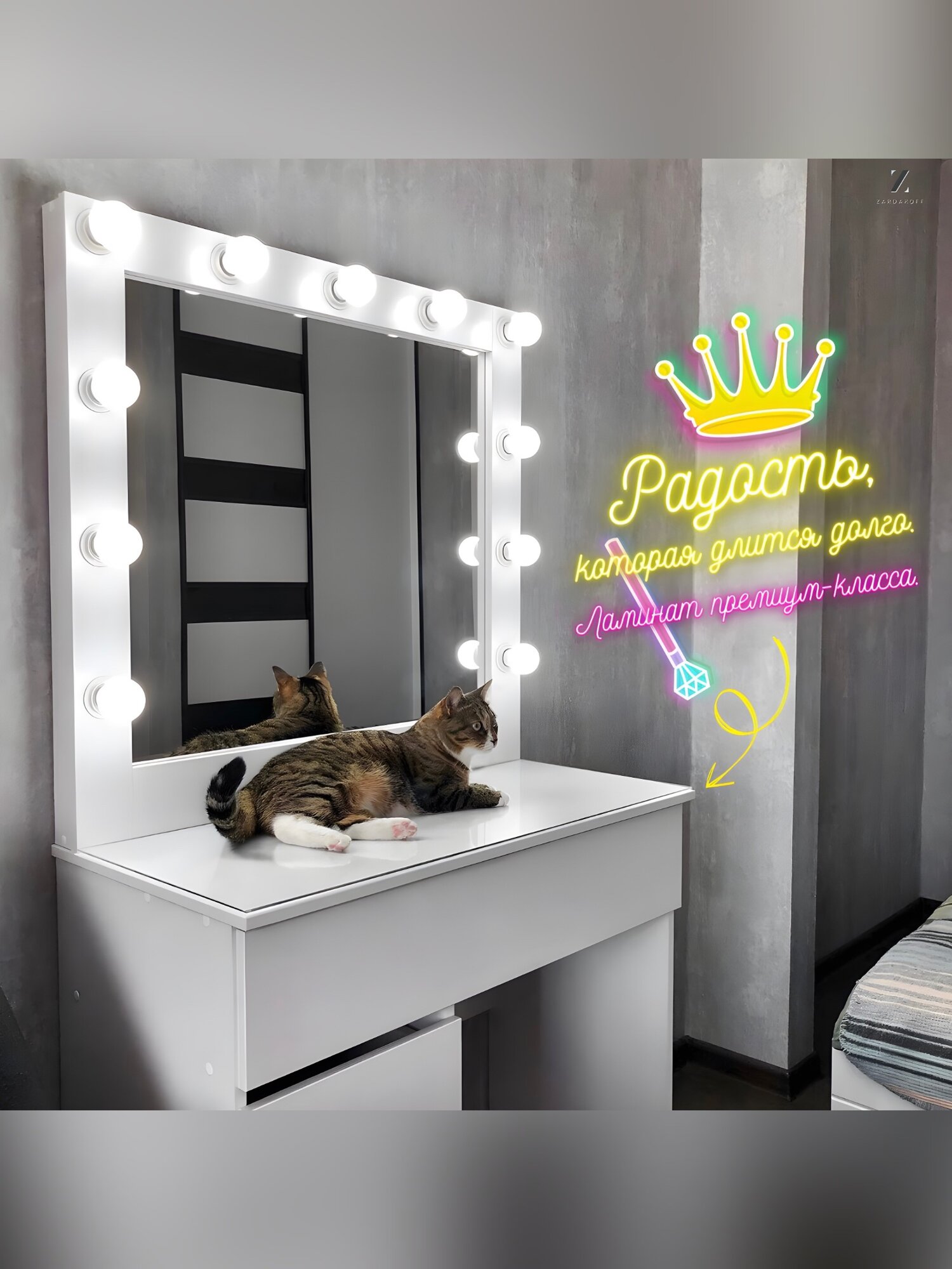 Туалетный столик с гримерным зеркалом и подсветкой, гримерный стол "Nova" интересное: