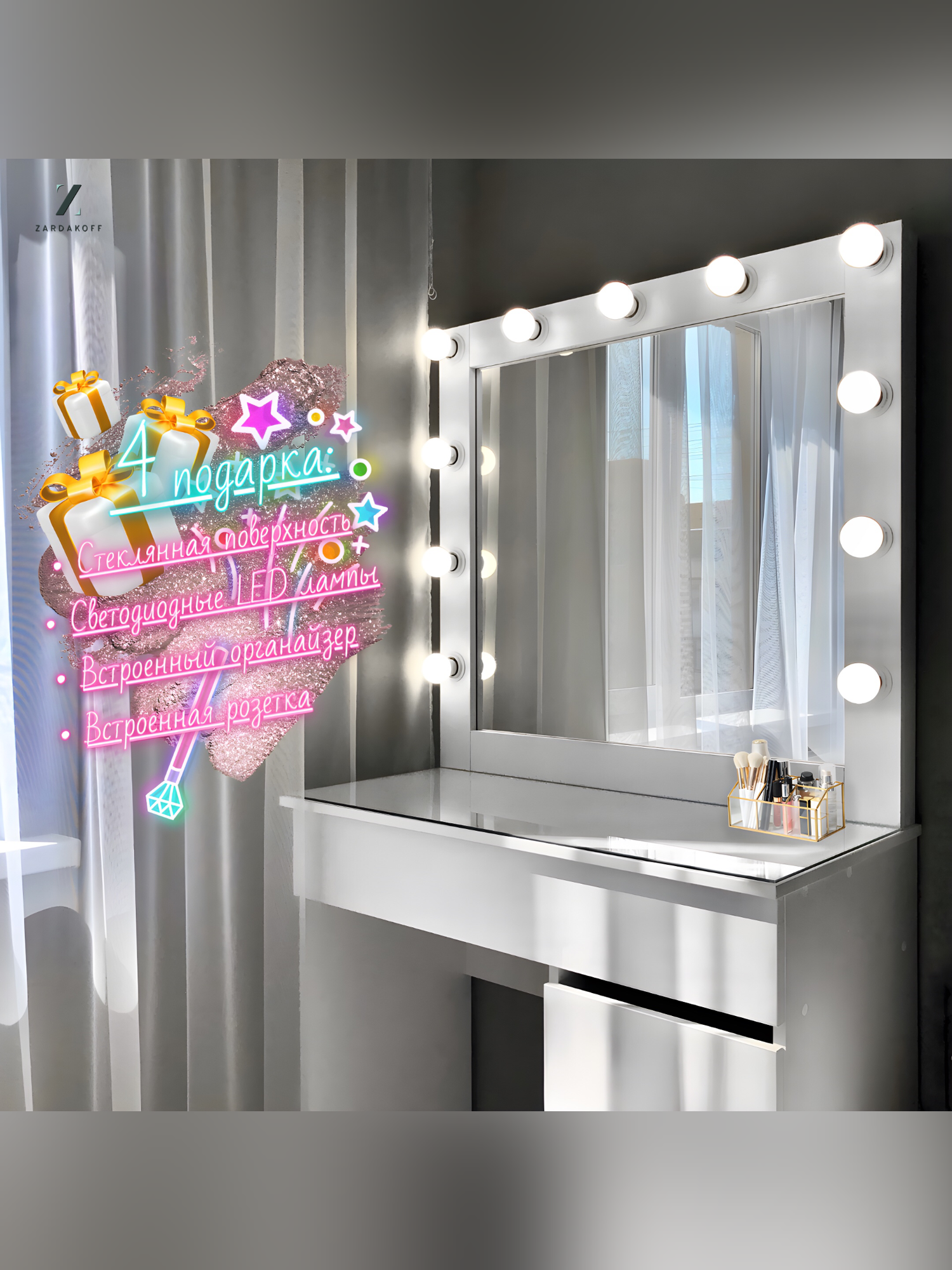 Купить Туалетный столик с гримерным зеркалом и подсветкой, гримерный стол "Nova"