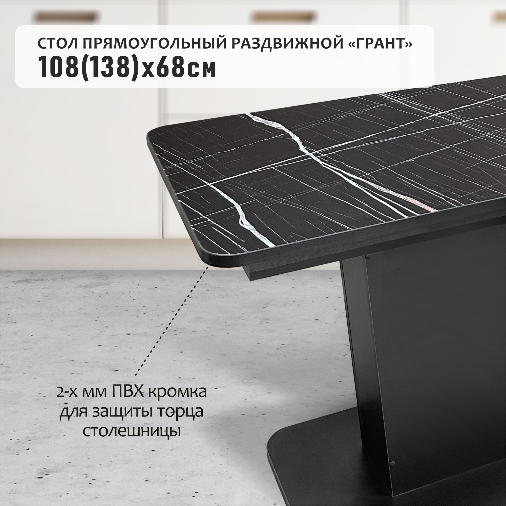 Стол кухонный раздвижной черный Грант, 108(138)х68см