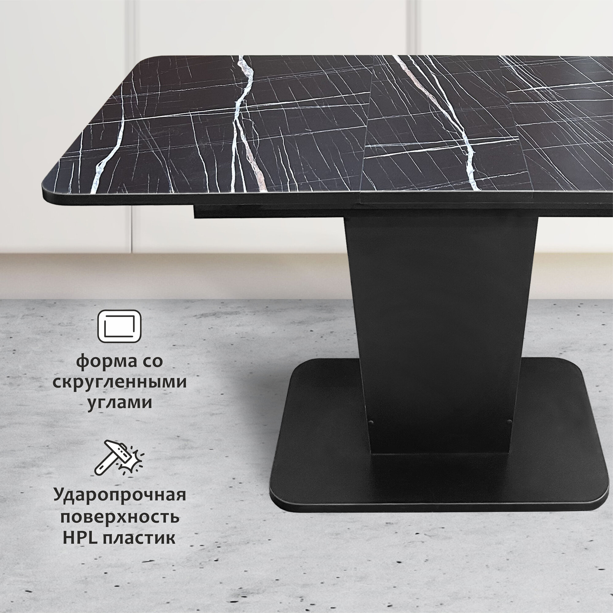 Стол обеденный Фабрика кухонной мебели "Астола" "Грант", черный мрамор, ЛДСП, пластик