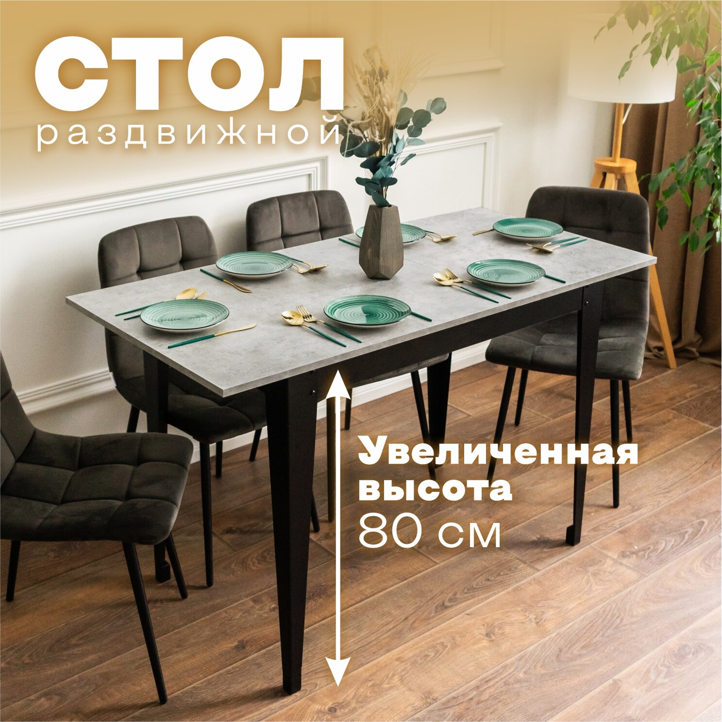 СохранитьСтол кухонный раздвижной Donini 80 Бетон Чикаго светло-серый. Стол обеденный раздвижной / раскладной. интересное: