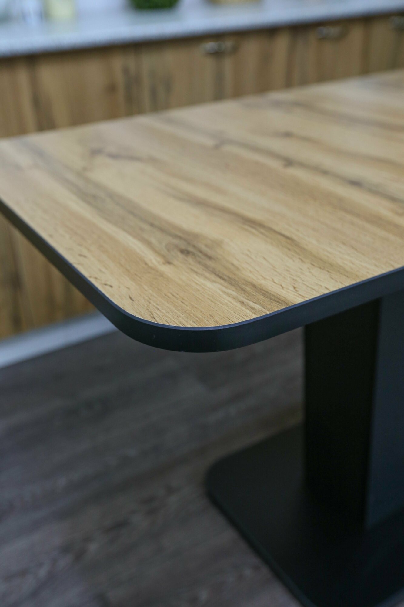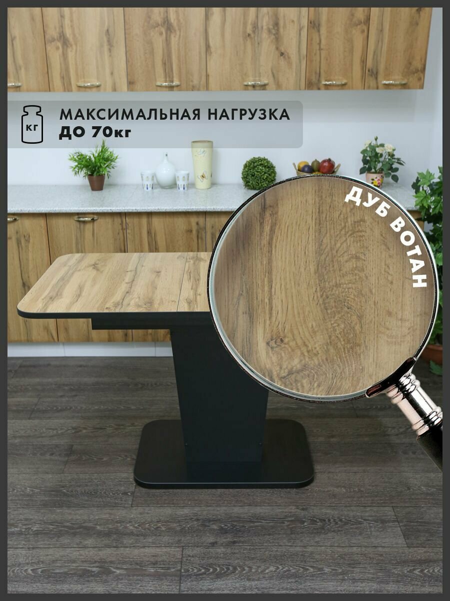 Стол кухонный раздвижной EVITA 1080 (1370)*680*770 на одной ножке пластик дуб вотан черный / стол обеденный