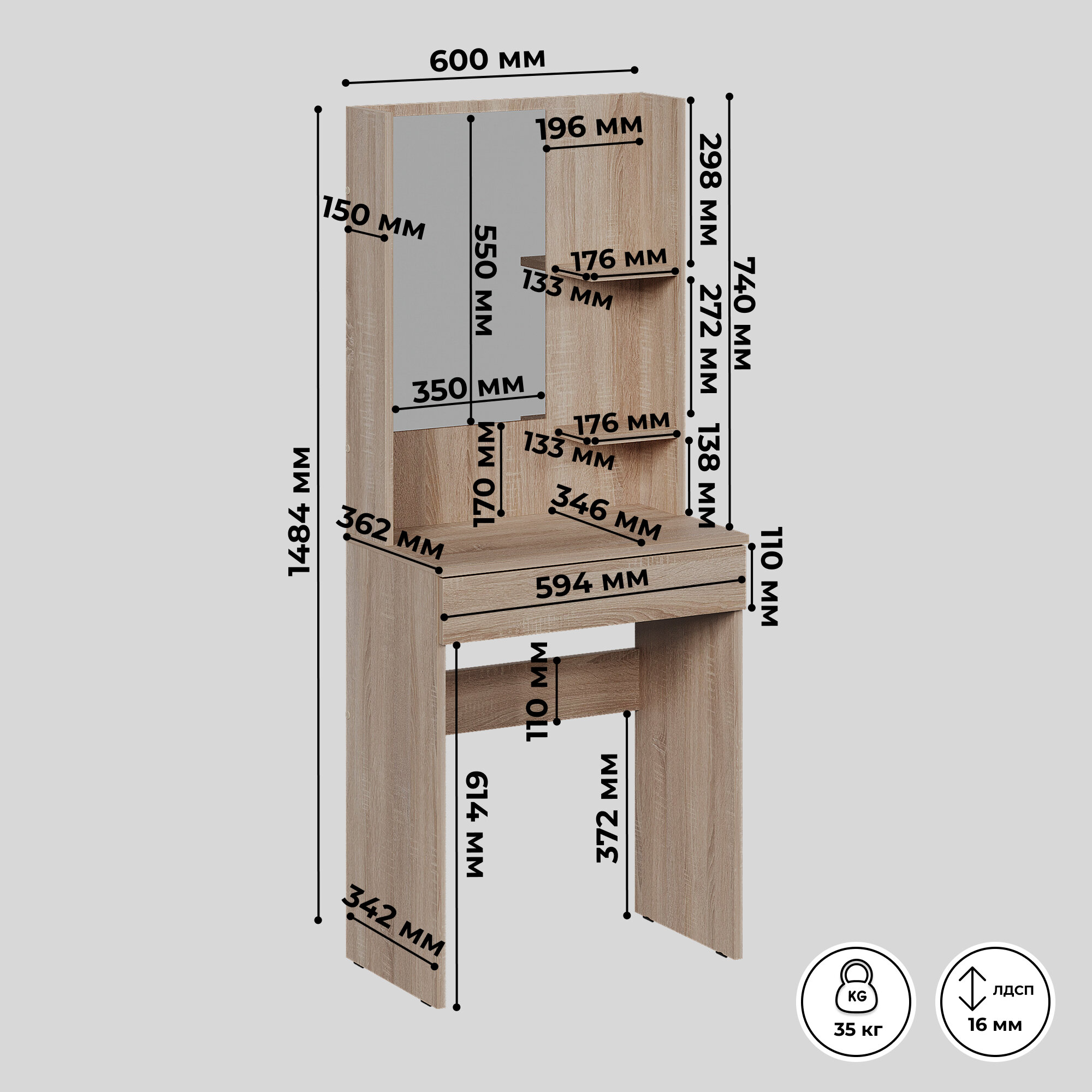Туалетный столик с зеркалом для спальни гостиной детской Кео СТЛ-130-Сонома интересное: