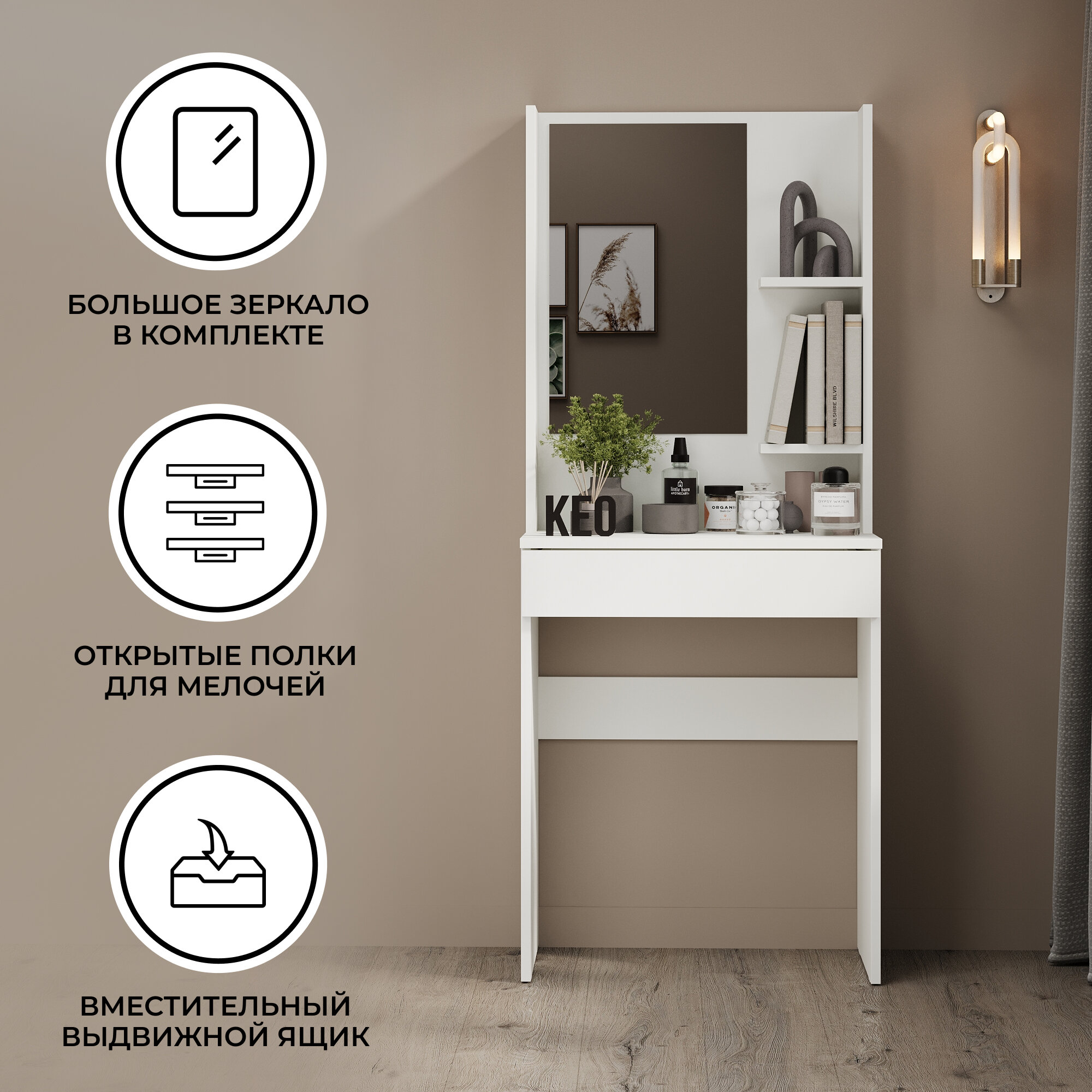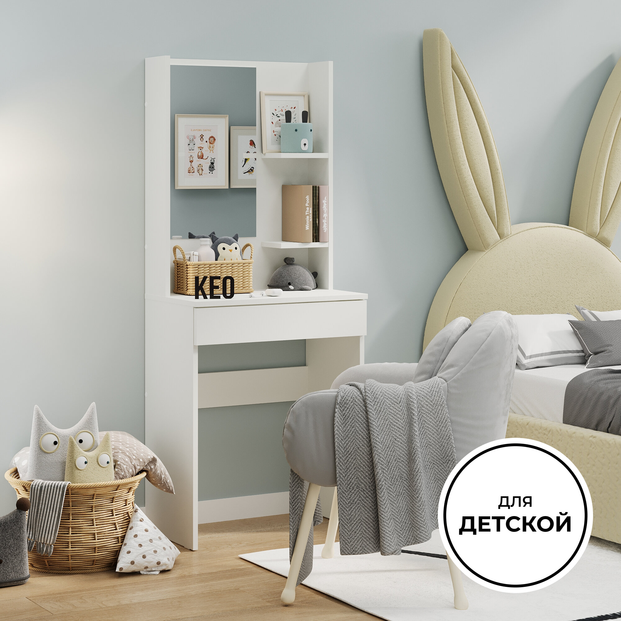Туалетный столик с зеркалом для спальни гостиной детской Кео СТЛ-130-Белый интересное:
