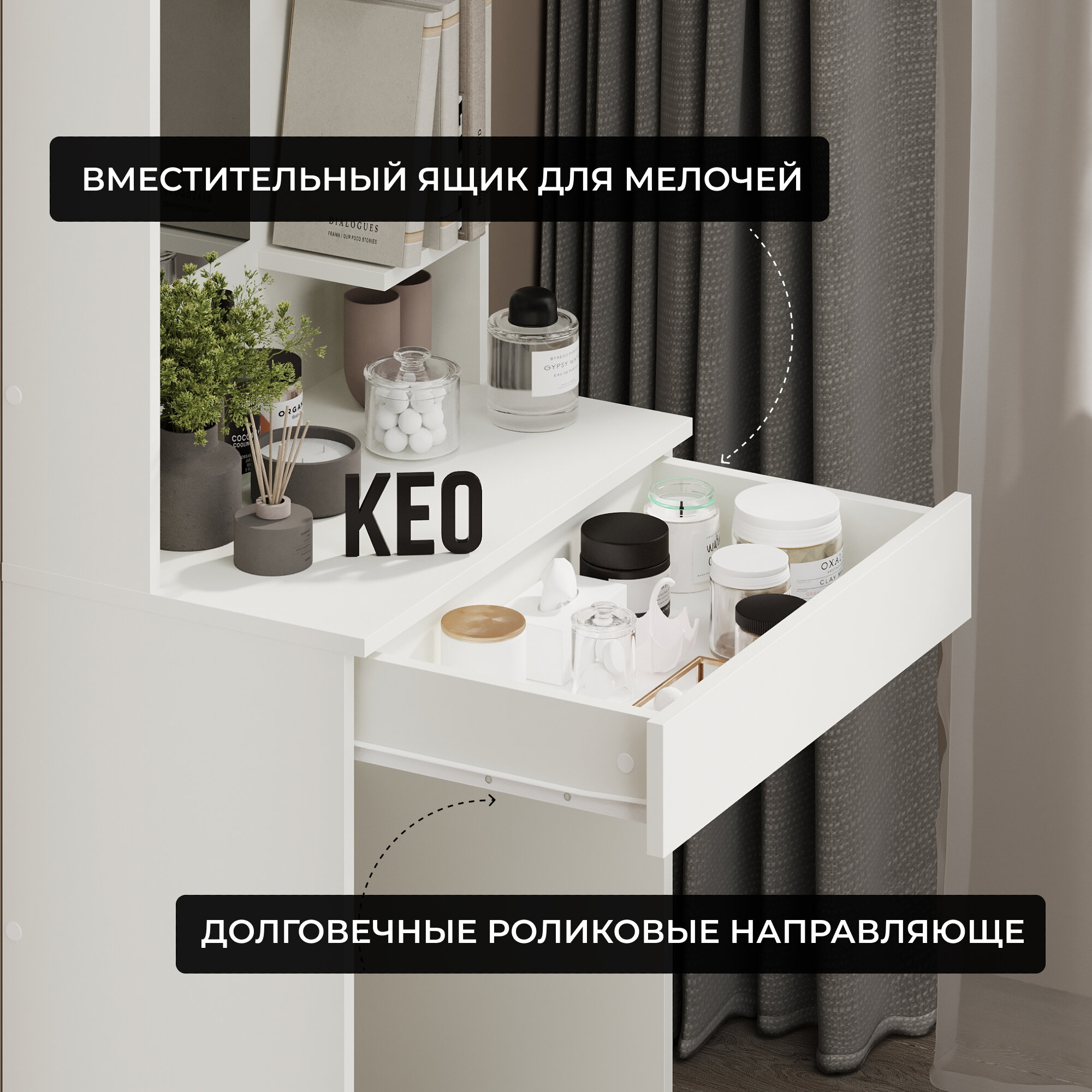 Ниже Вы можете прочитать отзывы на Туалетный столик с зеркалом для спальни гостиной детской Кео СТЛ-130-Белый, ознакомится с подробными характеристиками, посмотреть интересные обзоры и фотографии на Туалетный столик с зеркалом для спальни гостиной детской Кео СТЛ-130-Белый.