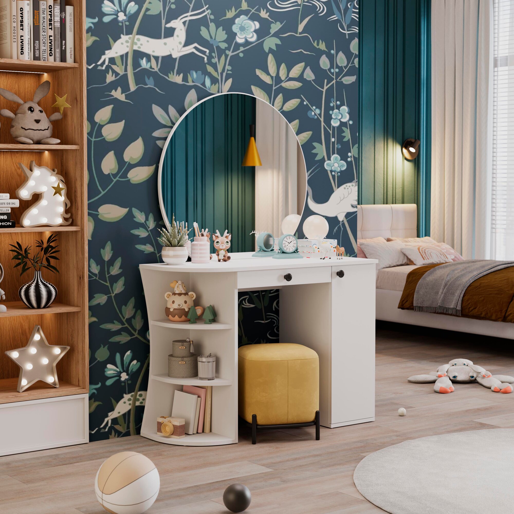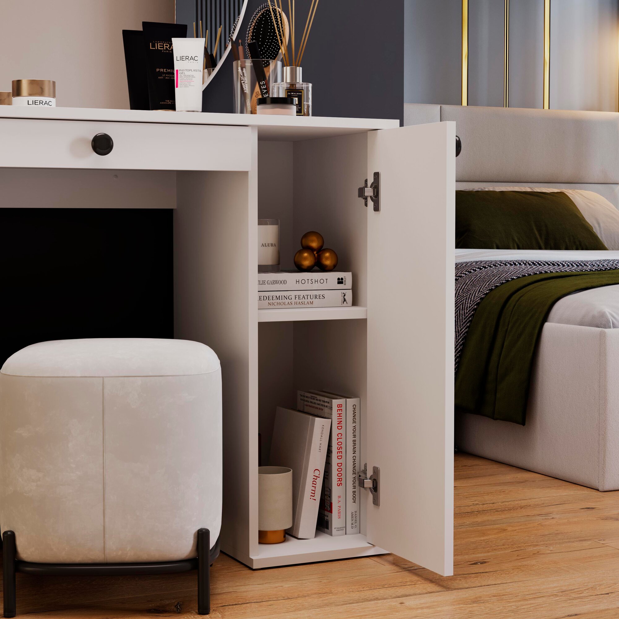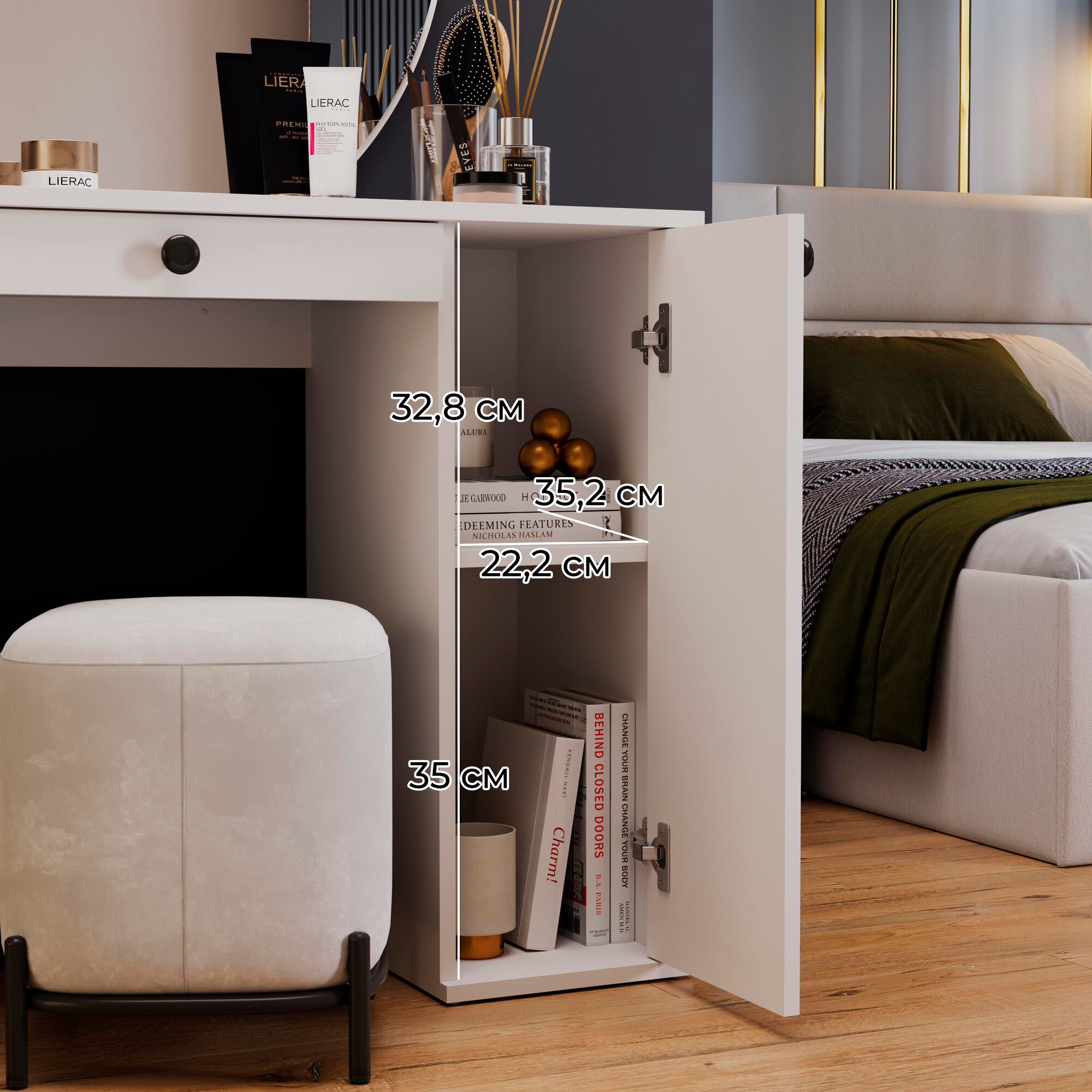 Туалетный стол с ящиком и полками, трюмо белый (ВхШхГ) 147х 100х40 см, Соло интересное:
