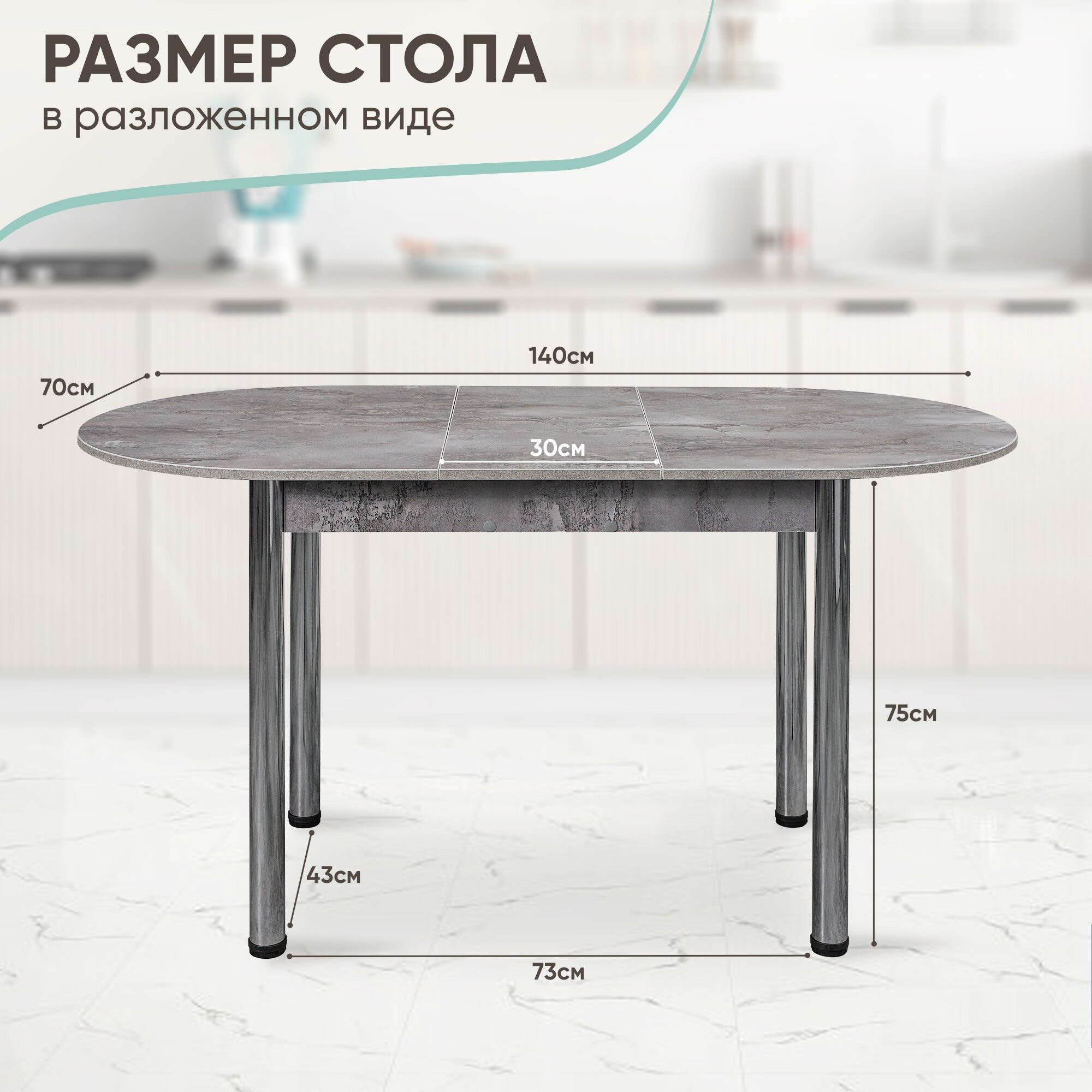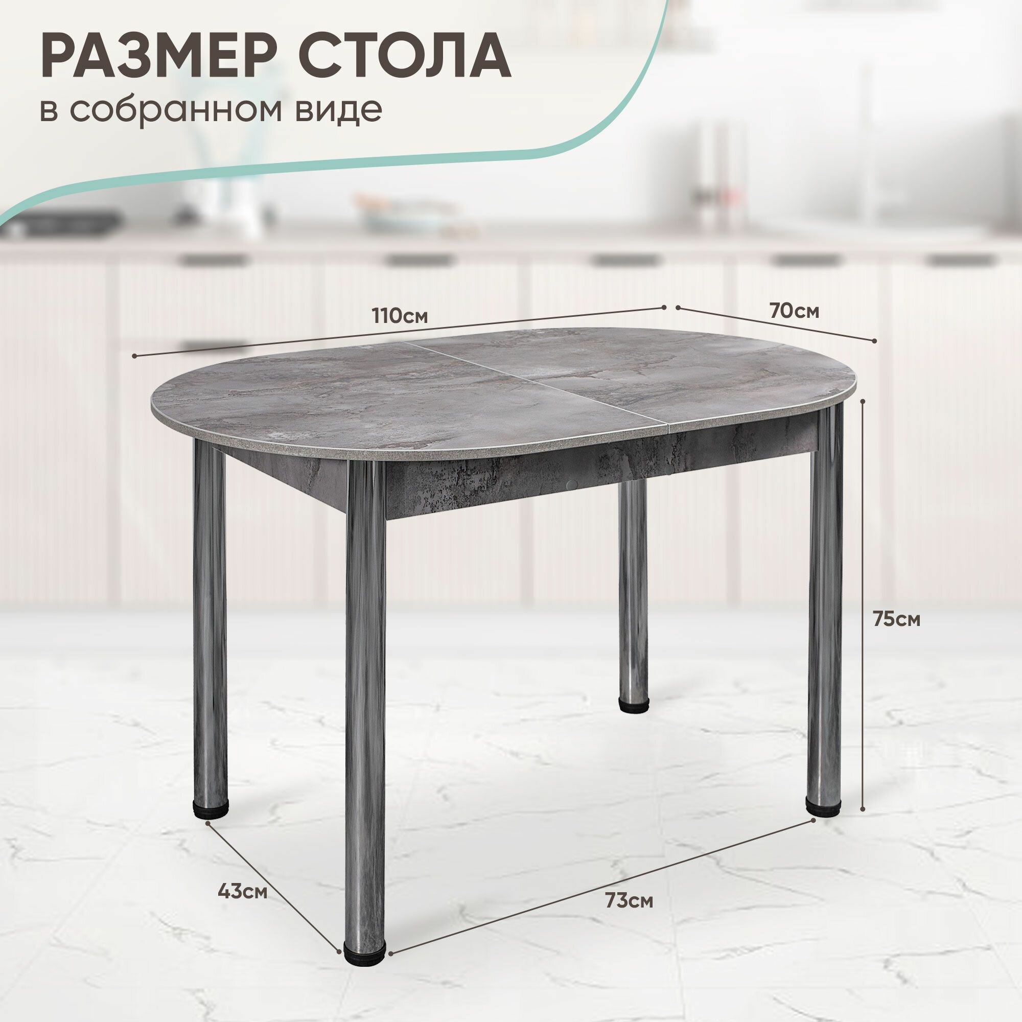 Стол кухонный раздвижной Овальный, Камень Лофт 110-140х70х75 см