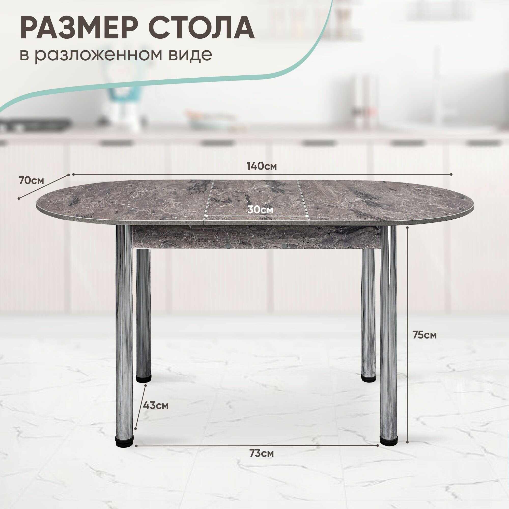Стол кухонный раздвижной Овальный, Камень Лофт 110-140х70х75 см