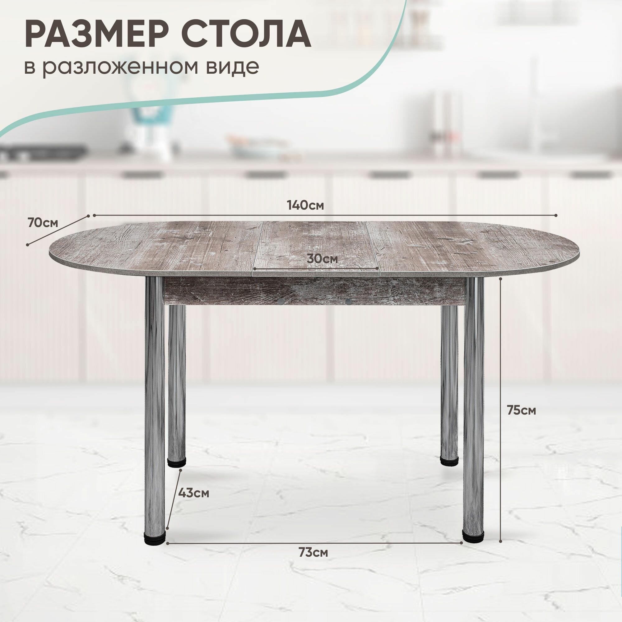 Стол кухонный раздвижной Овальный, Этна 110-140х70х75 см